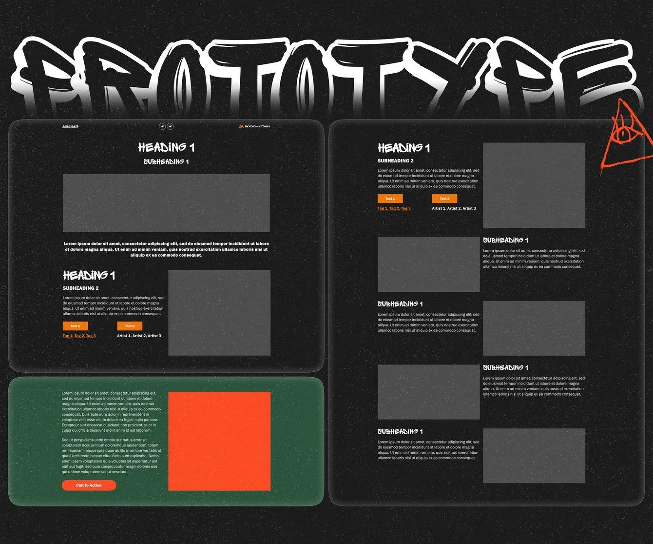 Пока наши коллеги из ЛФ готовили текст, старший дизайнер на основе черновика подбирал контент и готовил прототип. Важно было уместить всю информацию на одной странице, а также продумать фичи для лёгкого восприятия контента. Несмотря на андеграундность проекта, он в полной мере должен был раскрыть тему истории граффити, и при этом не стать скучным и перегруженным.