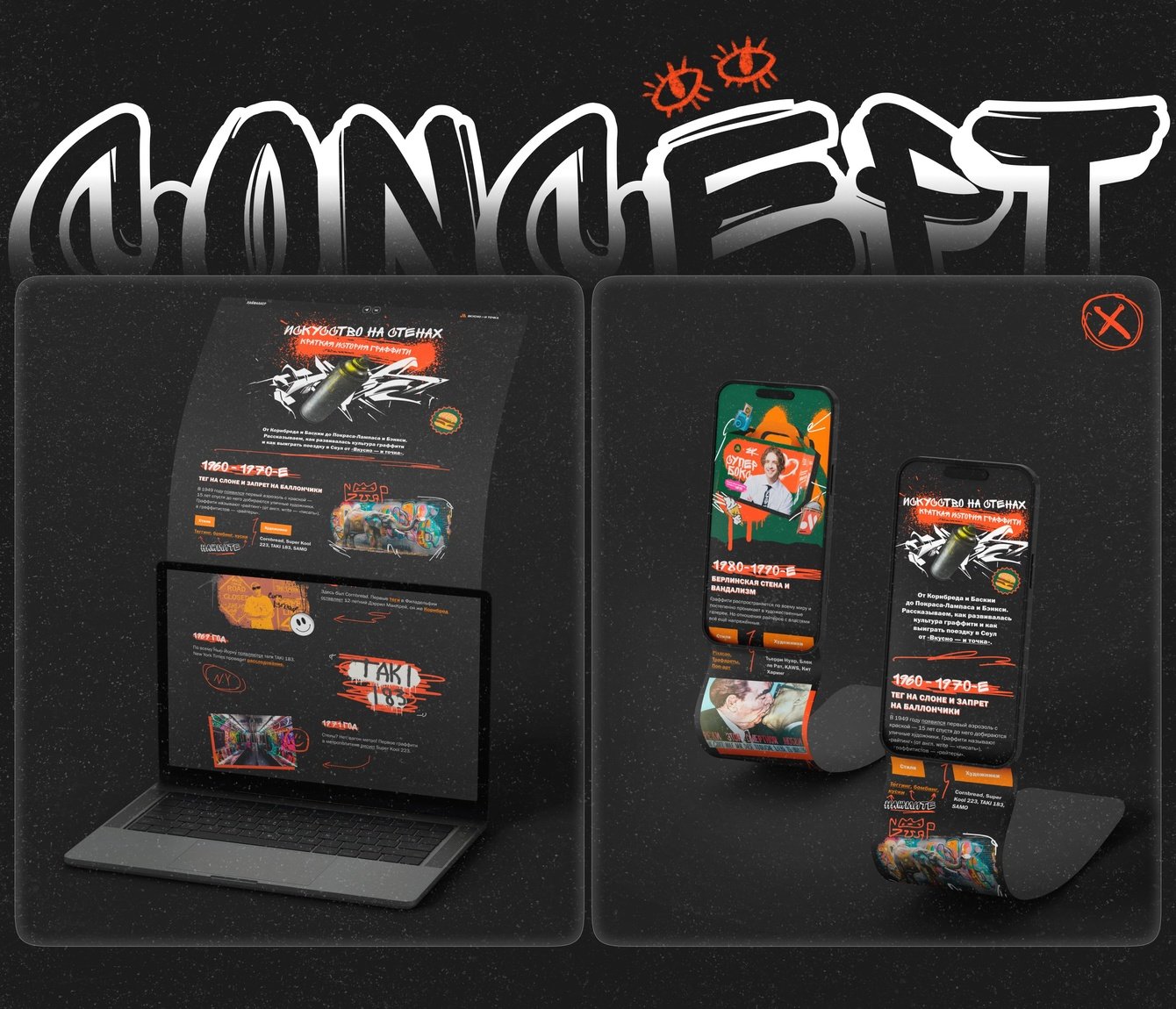 Граффити — это про яркость, свободу и самовыражение. Мы перевели эту энергию в язык цифрового дизайна, чтобы вдохновить пользователей и рассказать историю уличного искусства в интерактивном формате.
