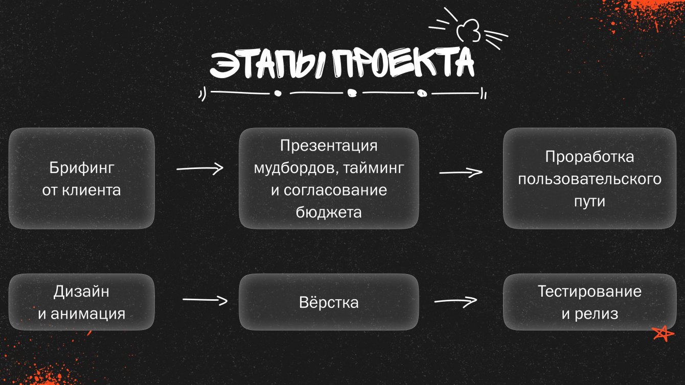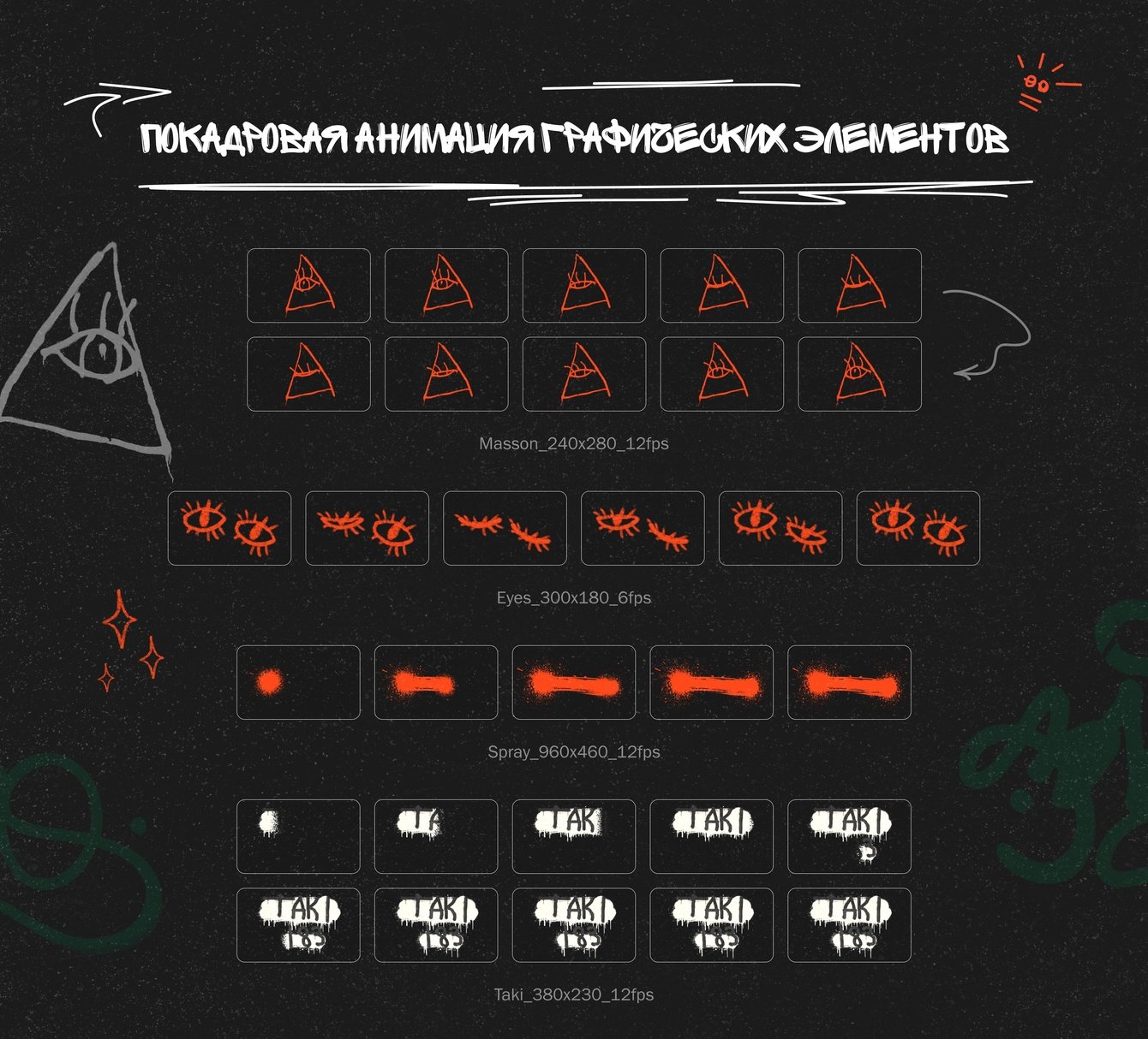 Для дизайна мы подобрали фото граффити и разработали анимационные паттерны. Для каждого блока истории была разработана своя анимация, а весь дизайн связали сквозные графические элементы в виде рисунков от руки.