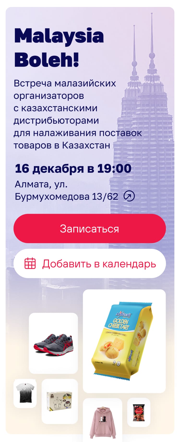 Малайзия выпускает и экспортирует замечательные товары, но в Казахстане об этом пока мало кто знает. Чтобы рассказать о преимуществах малайзийских товаров местным ритейлерам, заказчик организовал офлайн-мероприятие.