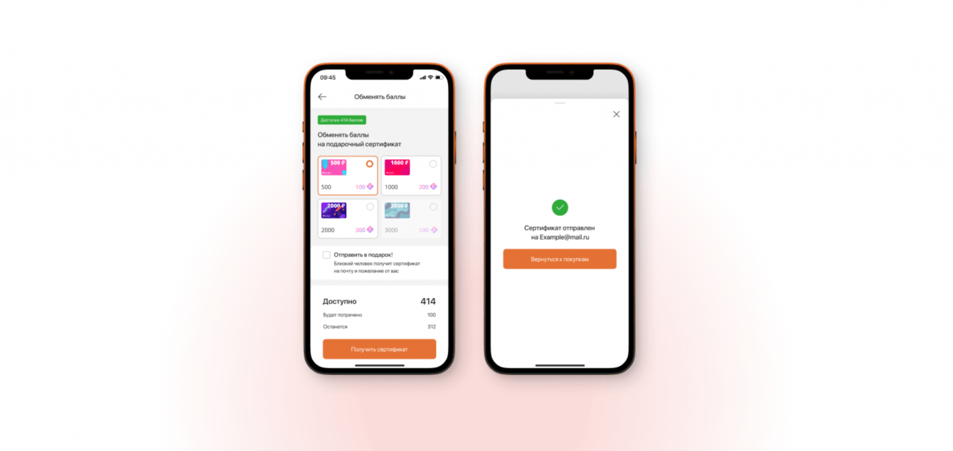 Обменять баллы на сертификаты разных номиналов можно в личном кабинете.