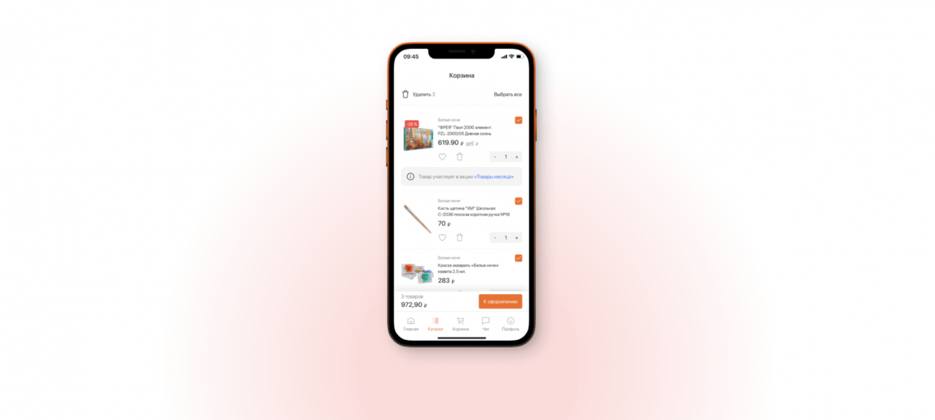 Мы сделали приложение, с которым можно быстро и просто заказывать любые товары для творчества из огромного каталога. Благодаря этому количество заказов растет, а пользователи больше не оставляют гневных отзывов.