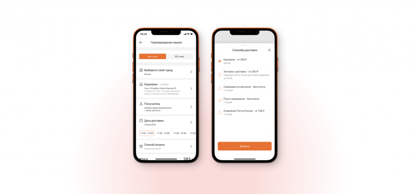 Выбрать нужный способ доставки можно на этапе подтверждения заказа.