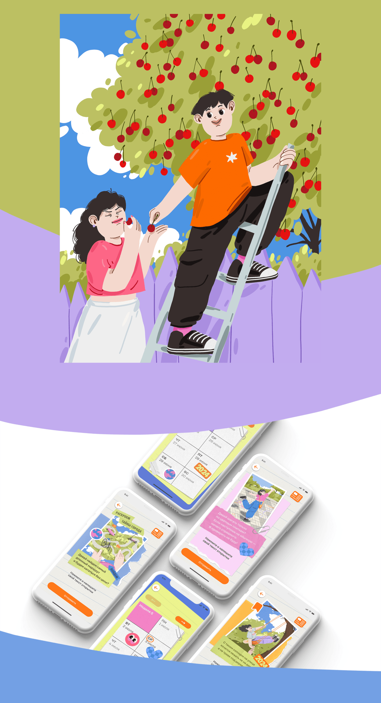 Нашей задачей было подобрать яркий, запоминающийся иллюстративный стиль и создать иллюстрации для этой акции. В рамках проекта мы создали около 20 иллюстраций, каждая из которых - со своим летним сюжетом.