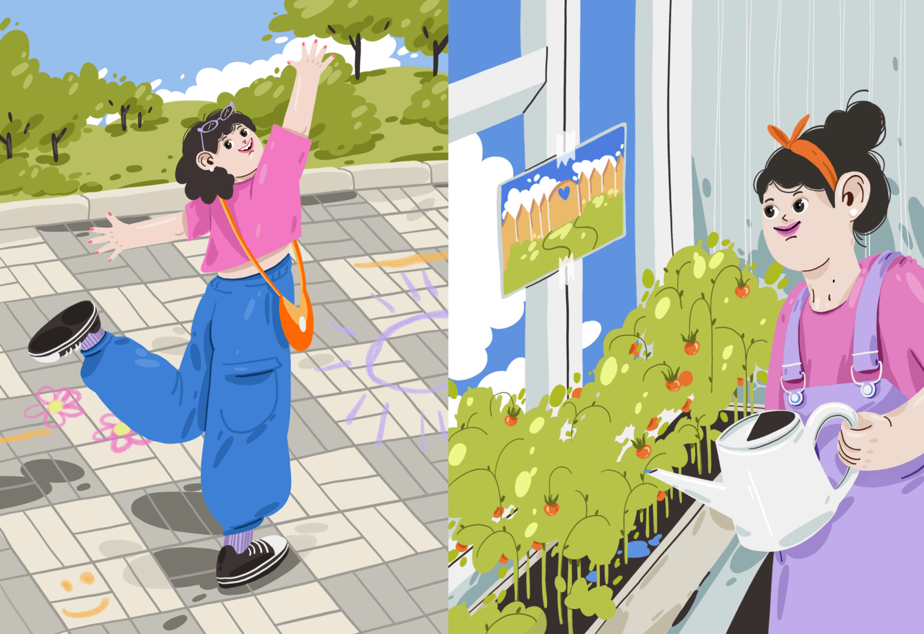 В результате проекта мы создали 17 иллюстраций с обаятельными персонажами и солнечными, яркими сюжетами.