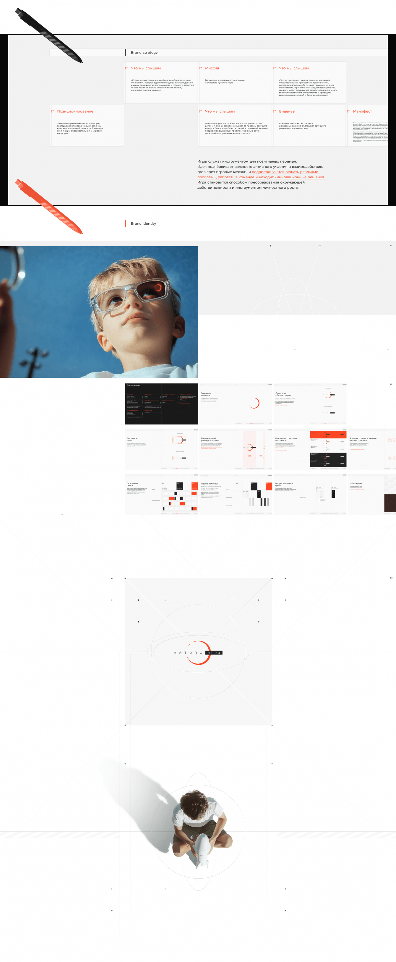 Коммуникация бренда строится на эстетике минималистично-футуристичного мира — того самого «светлого будущего», вдохновленное научной фантастикой, но без фальши. В качестве ориентиров мы опирались на чистые пространства лабораторий, технологичные интерьеры и функциональную строгость. При этом не ушли в лишённую эмоции и интриги стерильность, балансируя между серьёзность (так как Летово Игра — это «с детьми по-взрослому» и необходимой аудитории нескучностью).