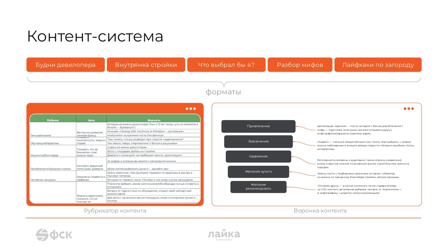 Контент решал задачи разных этапов взаимодействия с аудиторией: