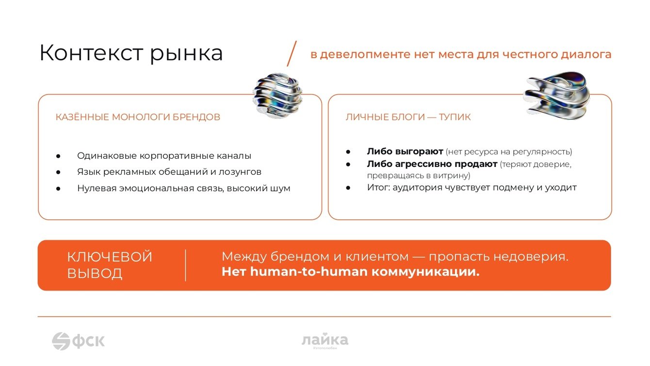 Коммуникация строилась вокруг честного разговора о рынке и личной ответственности девелопера за продукт.
