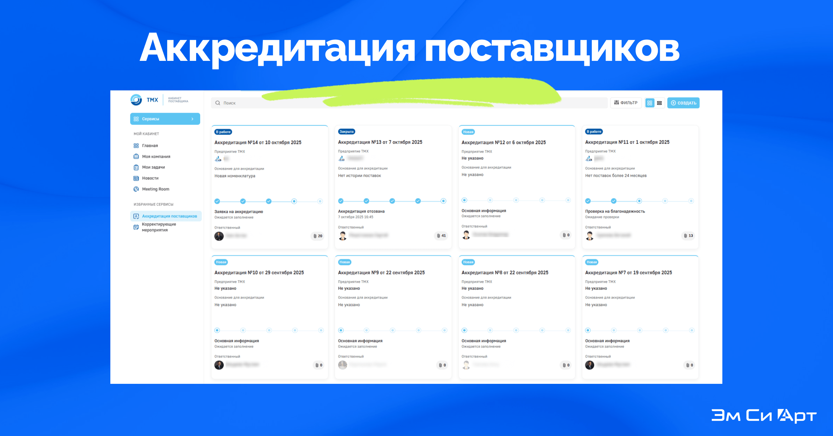 Стремительный рост ТМХ выявил потребность в создании единой системы для более эффективного взаимодействия производственных предприятий Группы ТМХ (ПП Группы ТМХ) и более 5000 поставщиков товарно-материальных ценностей (ТМЦ).