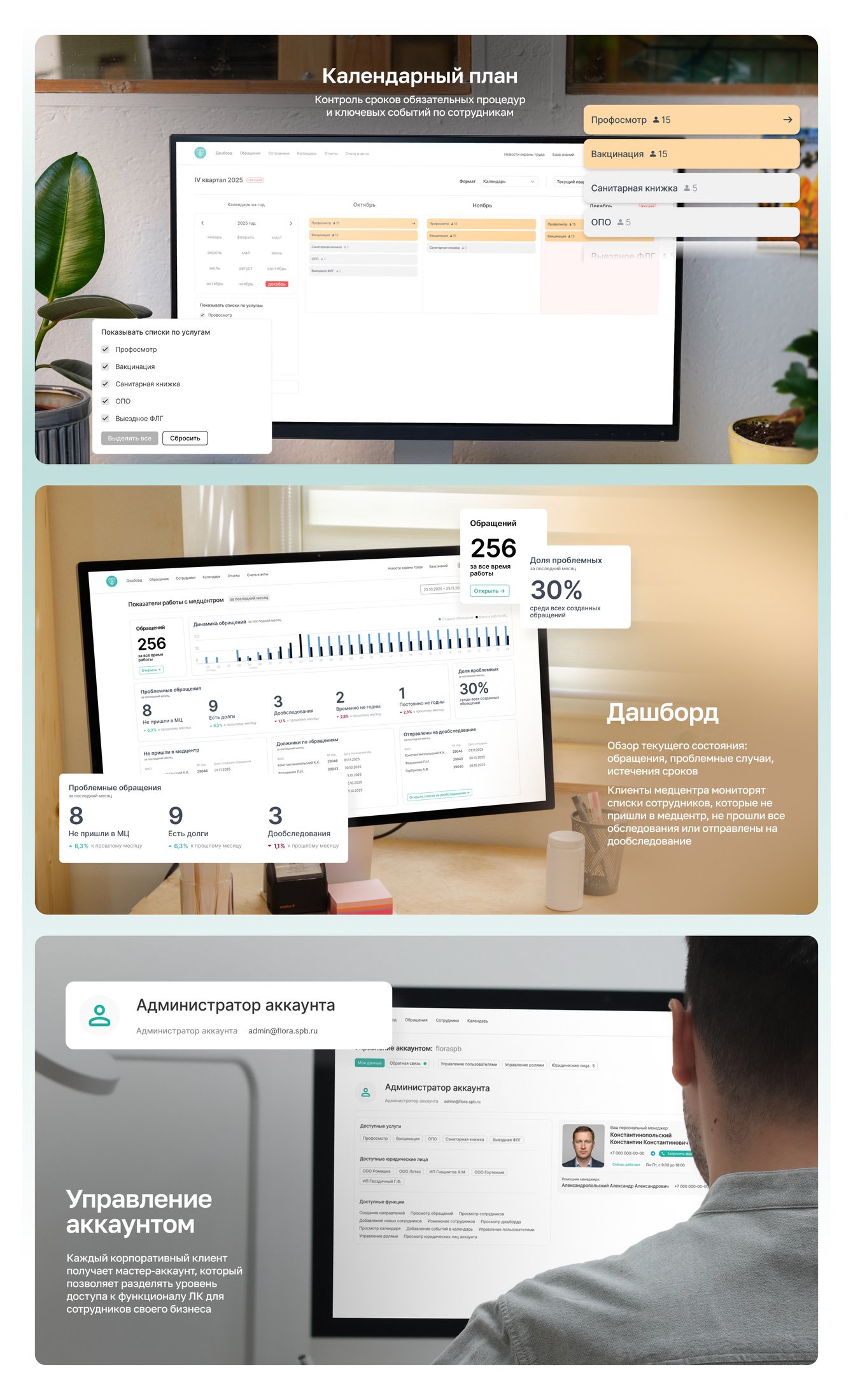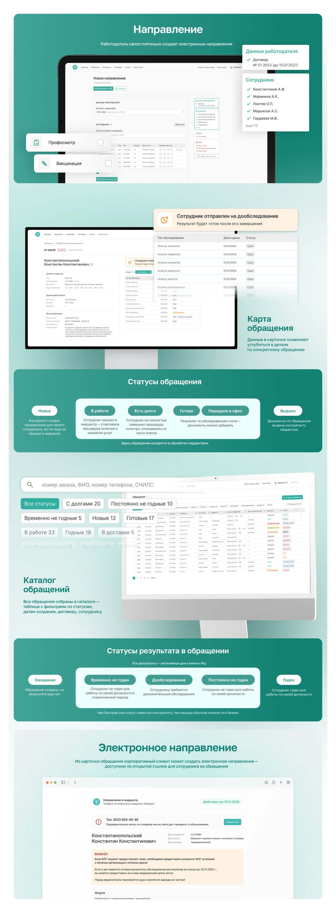 За 2 месяца спроектировали личный кабинет B2B-клиента, который позволил компаниям самостоятельно управлять профосмотрами сотрудников, а Заказчику — привлекать новых клиентов, повышать лояльность и одновременно снижать нагрузку на администраторов.