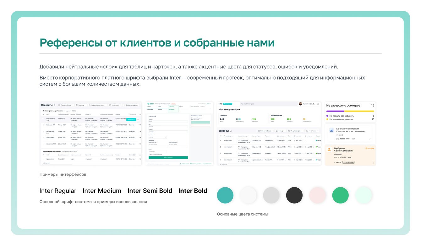 Визуальную основу мы взяли из фирменного стиля клиники, однако переосмыслили его для личного кабинета — системы, где важнее читаемость и навигация, чем какой-либо креатив.