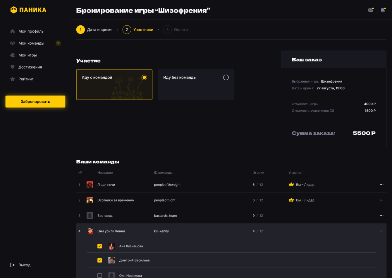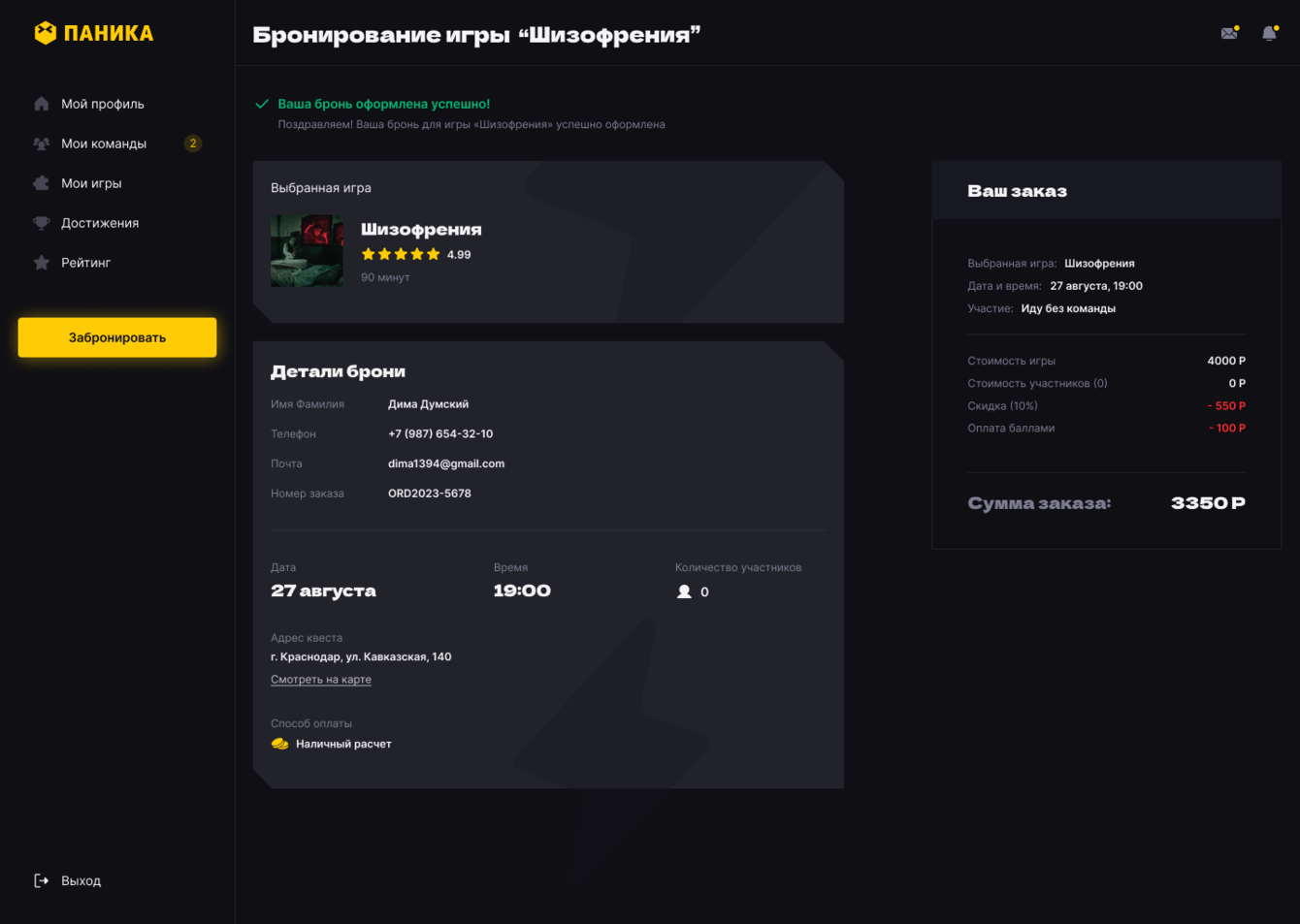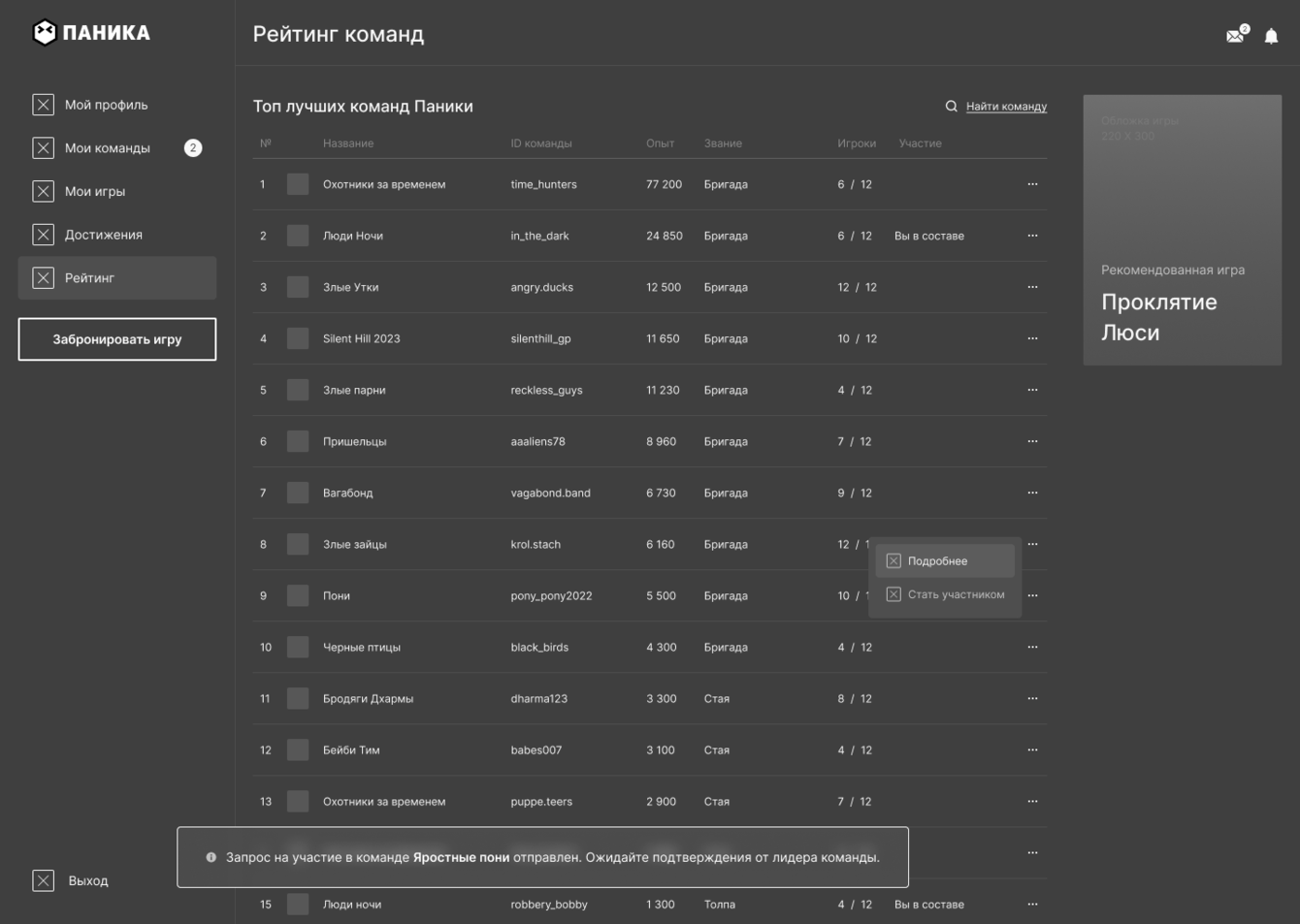 Задача: разработать личный кабинет игроков сети квестов, реализовать возможность организовываться в команды, накапливать опыт, баллы, получать ачивки, использовать баллы как скидки при бронировании игр.