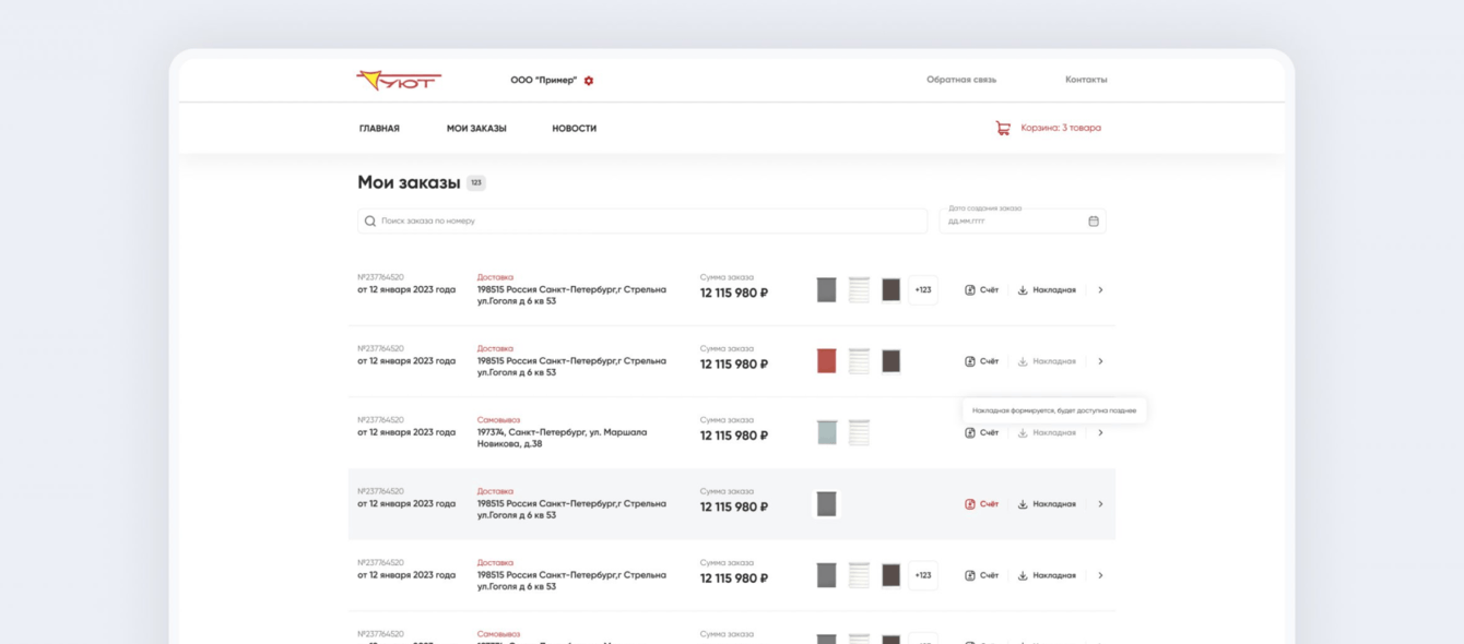 Упростилось формирование заказа для дилеров: адрес доставки и грузополучателя можно выбрать самостоятельно при создании заказа.