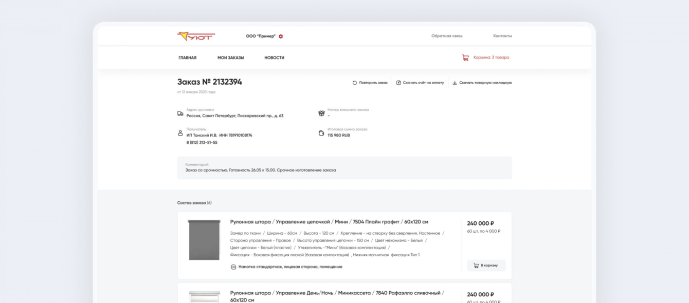 Задача: в УЮТе 1 000 000 000+ комбинаций готовых изделий. Нужно было сделать так, чтобы товар собирался в режиме конструктора и корректно отправлялся в производство. Формат маркетплейса с готовыми товарами для этого не подойдет. Сложность была в том, что мы работали со старой базой, где нужна максимальная точность при сопоставлении полей и при получении исходящих данных, иначе заказ отобразится некорректно.