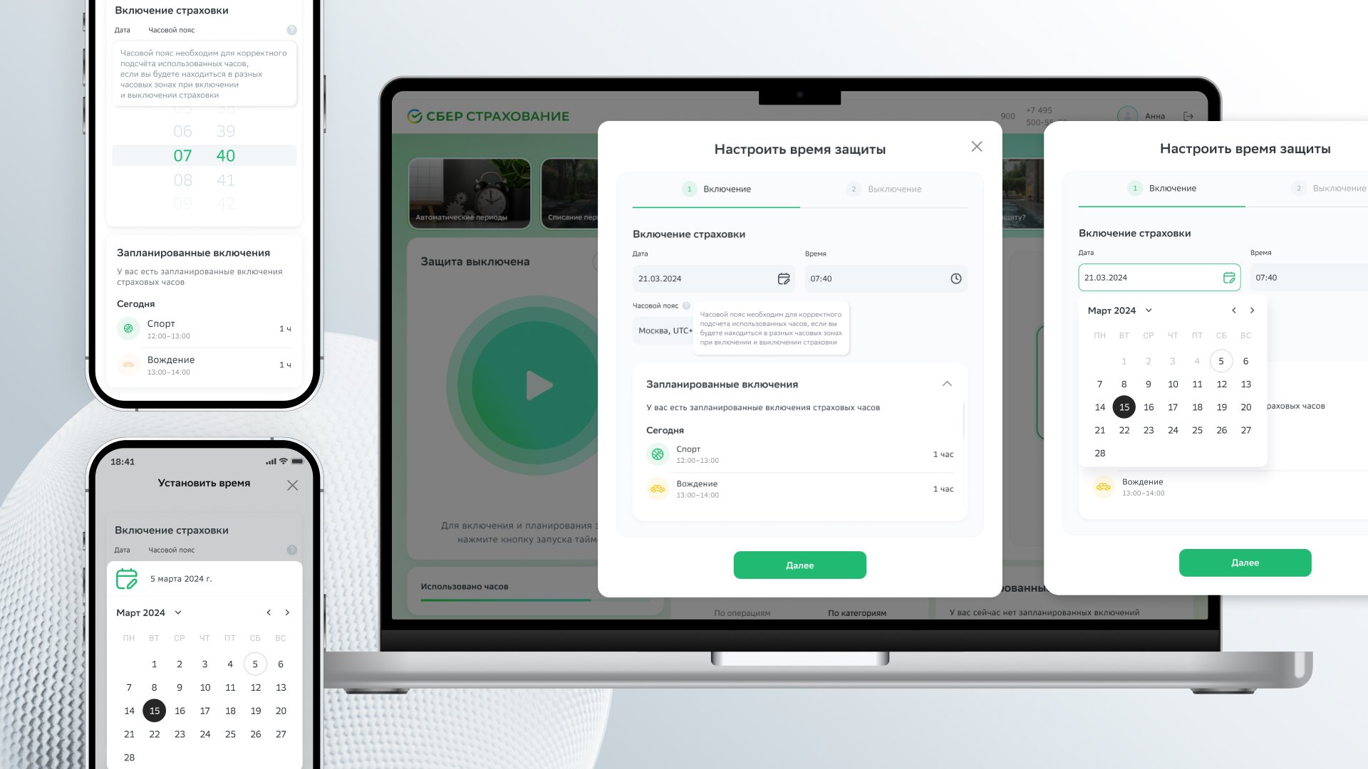 — создать личный кабинет, где каждый клиент сможет в режиме реального времени управлять продуктом «Страхование по часам» от СберСтрахования жизни (включать, выключать страховые часы, просматривать историю операций, определять график включения часов);