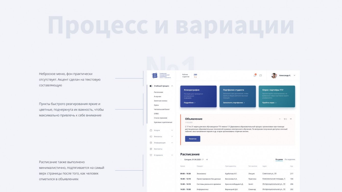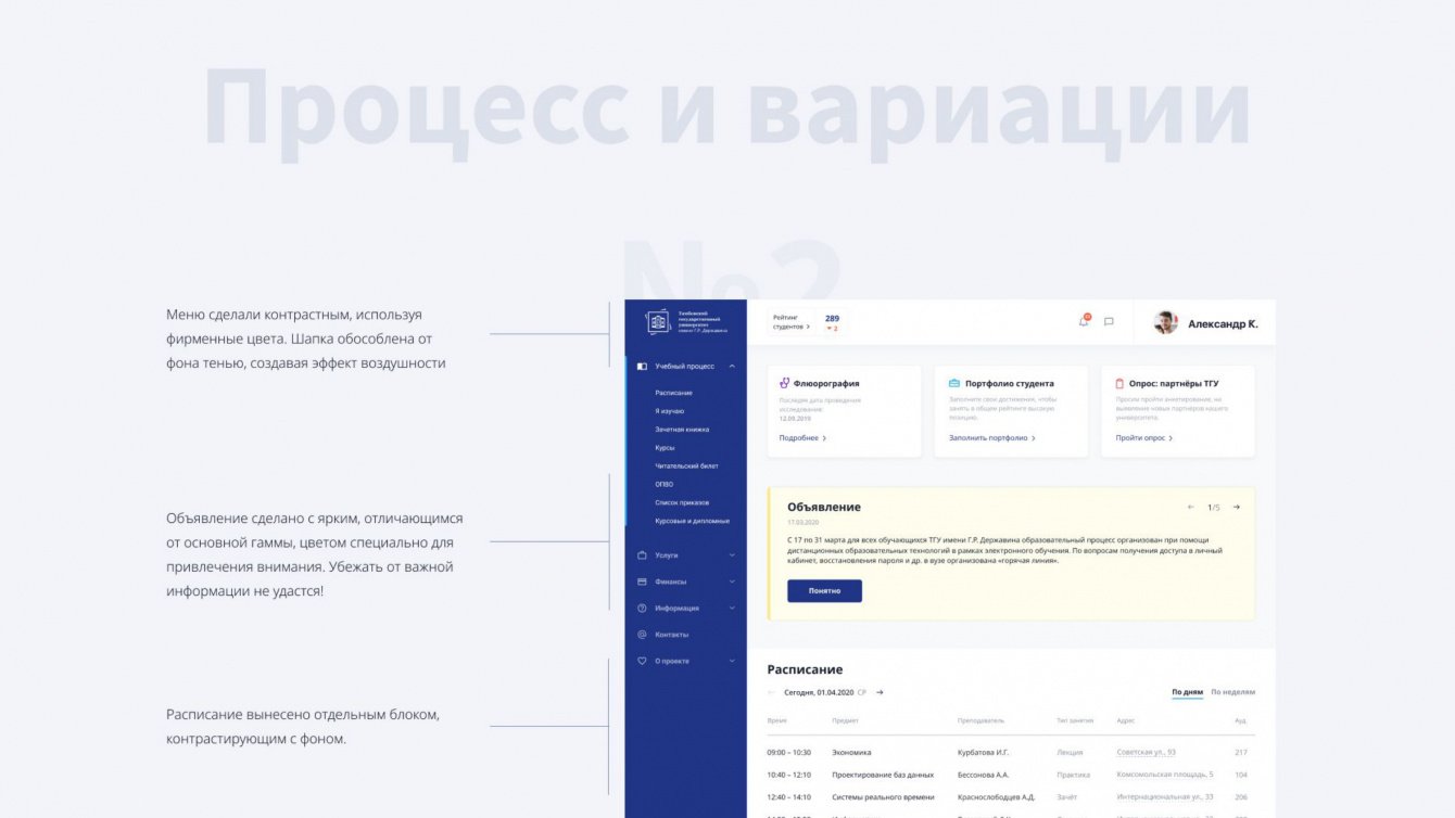 Требовалось создать оформление личного кабинета студента с акцентом на юзабилити и прозрачность ключевой информации.