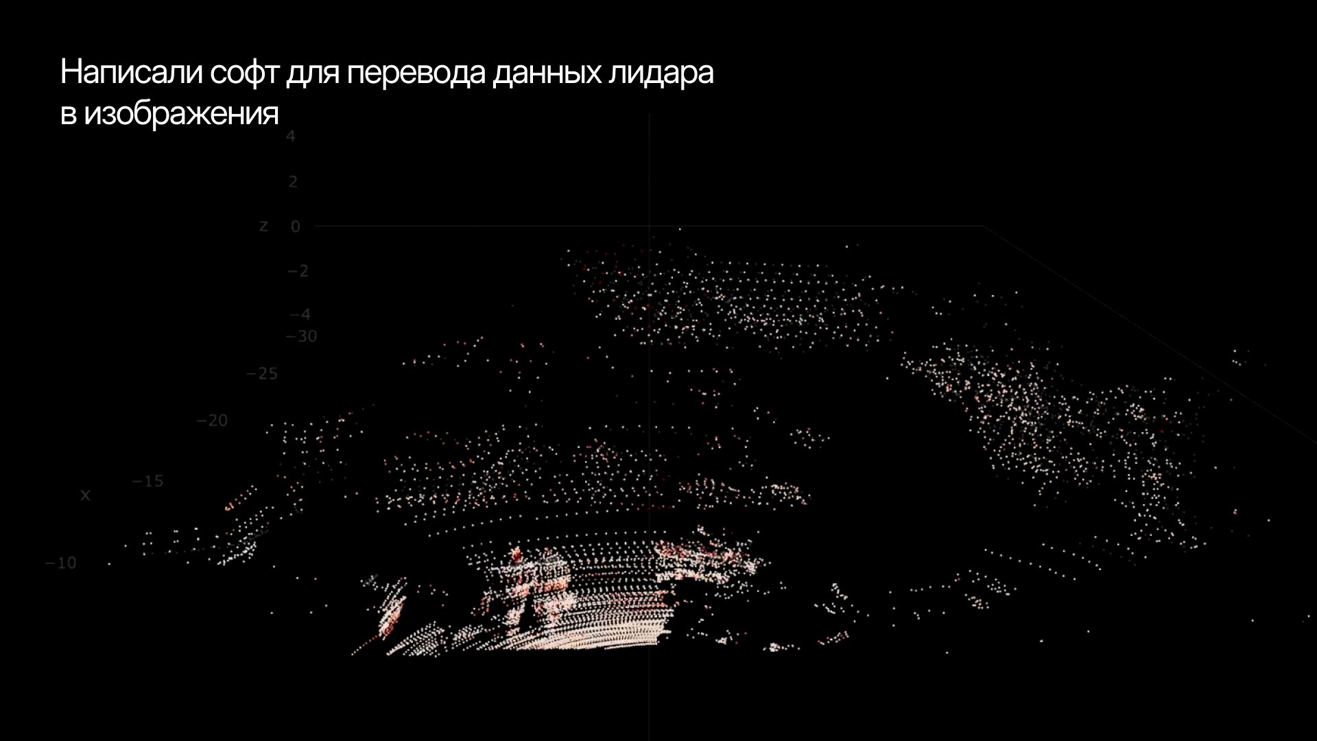 Лидар передает данные в виде набора координат. Это текстовый файл, с которым не сможет работать ни одна из моделей компьютерного зрения.