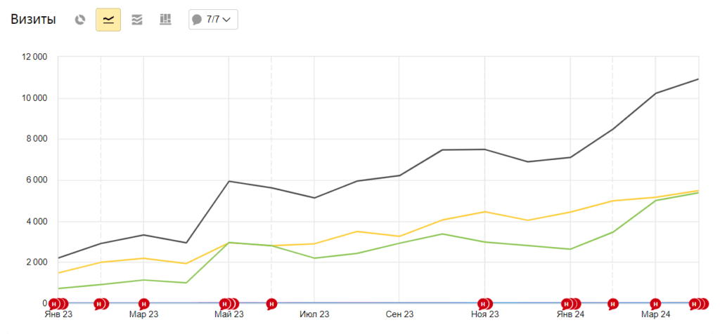 После склейки и редизайна мы продвигали сайт дальше, работая со всем семантическим ядром.