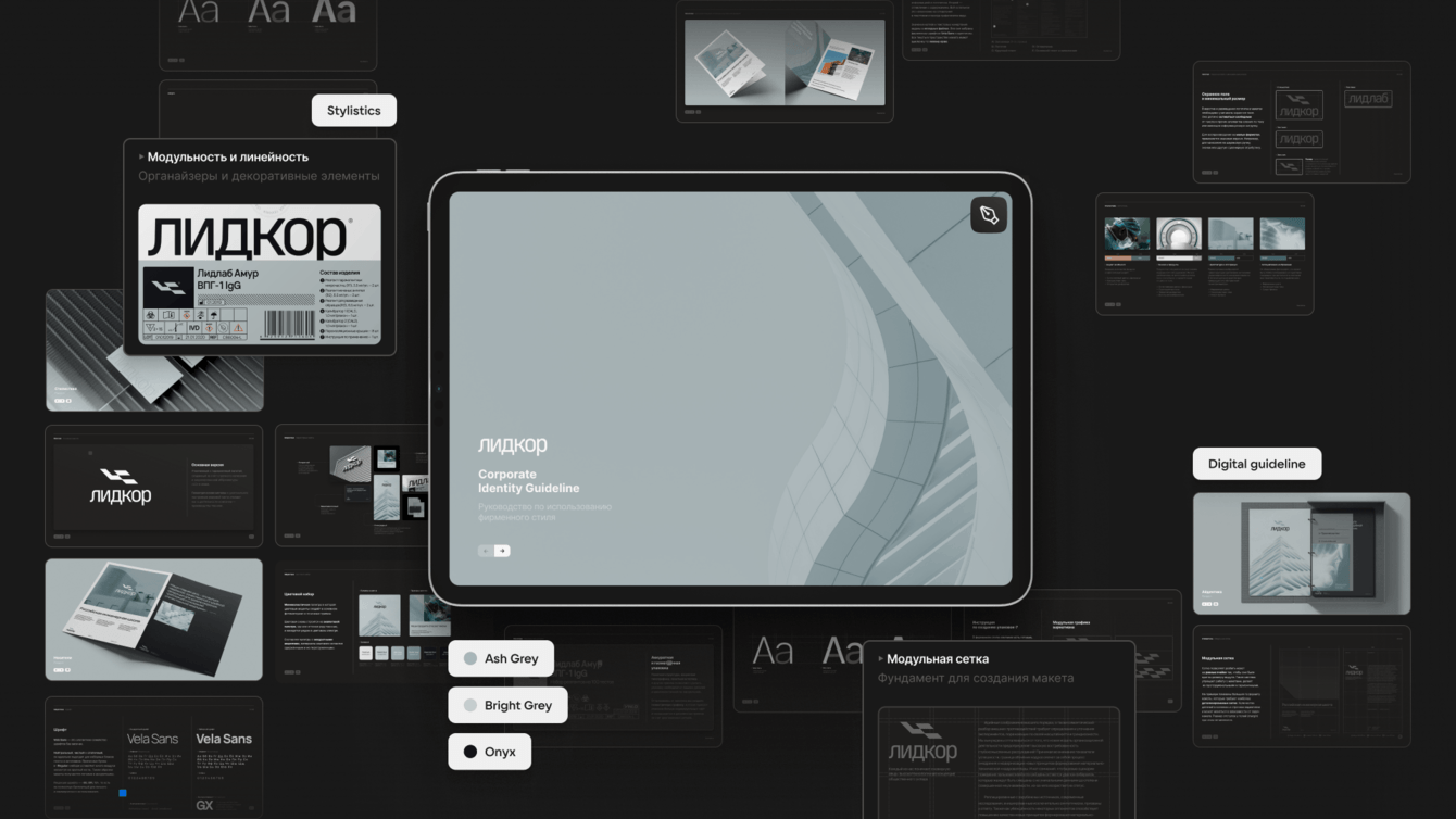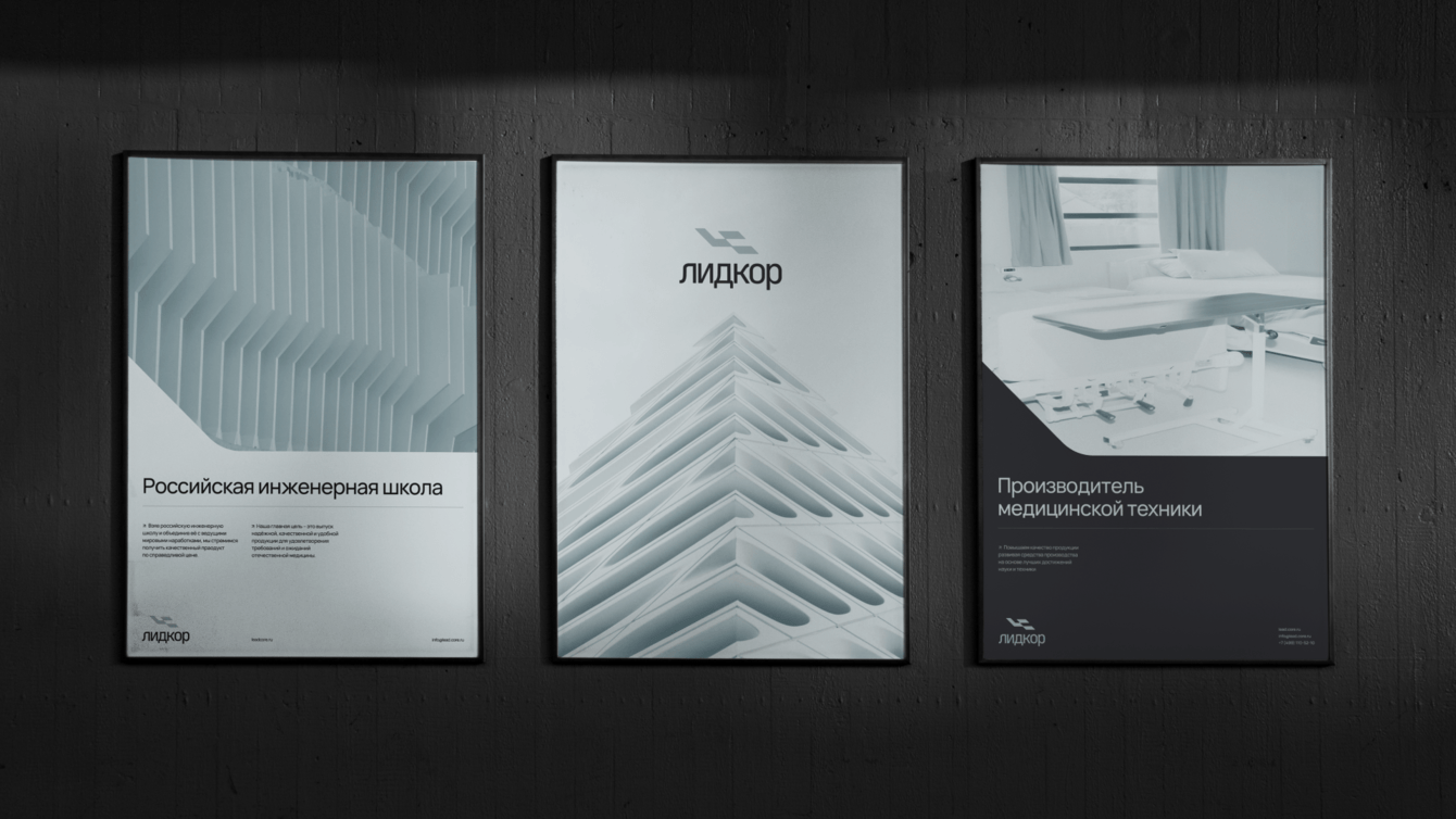 Лидкор – это российский производитель медицинской техники. У компании уже был разработан фирменный стиль. Команда обратилась к нам за обновлением уже имеющегося стиля и предложением нового.