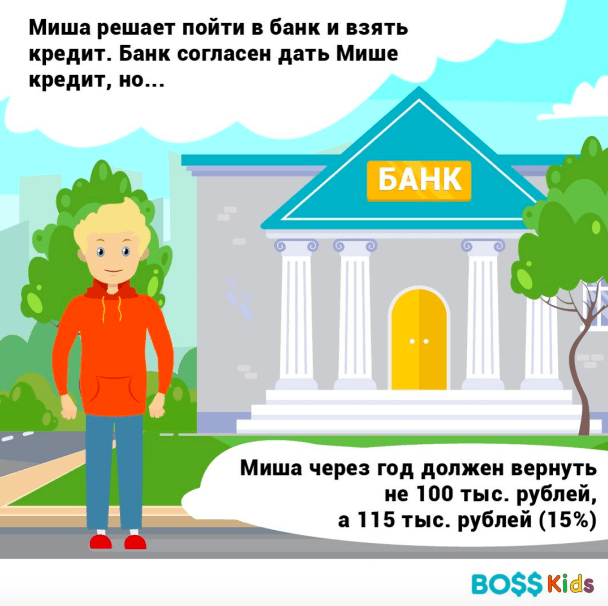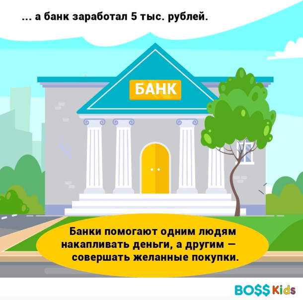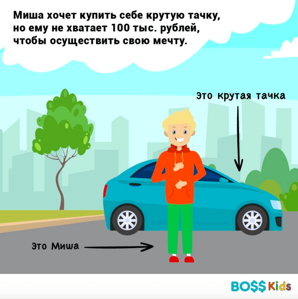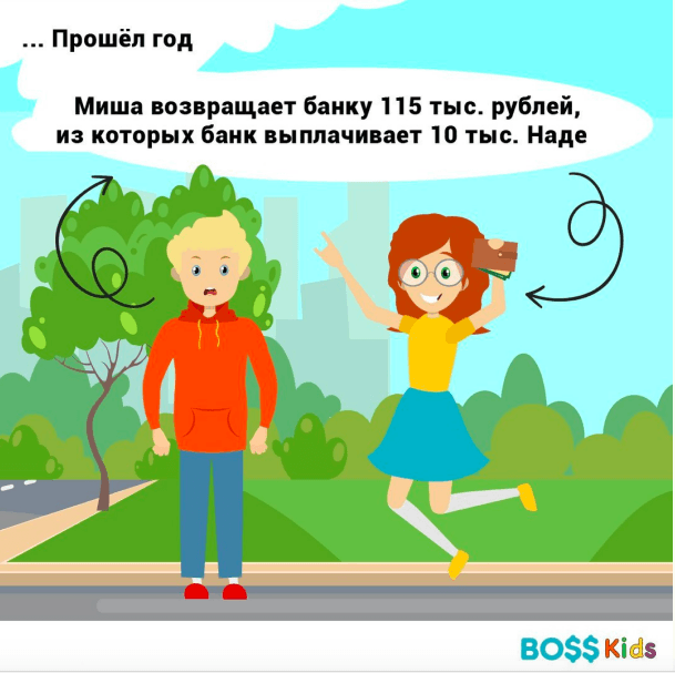 Разработали персонажей Надю и Мишу и поселили их в комиксах. При помощи иллюстраций помогли объяснить детям основы финансовой грамотности.