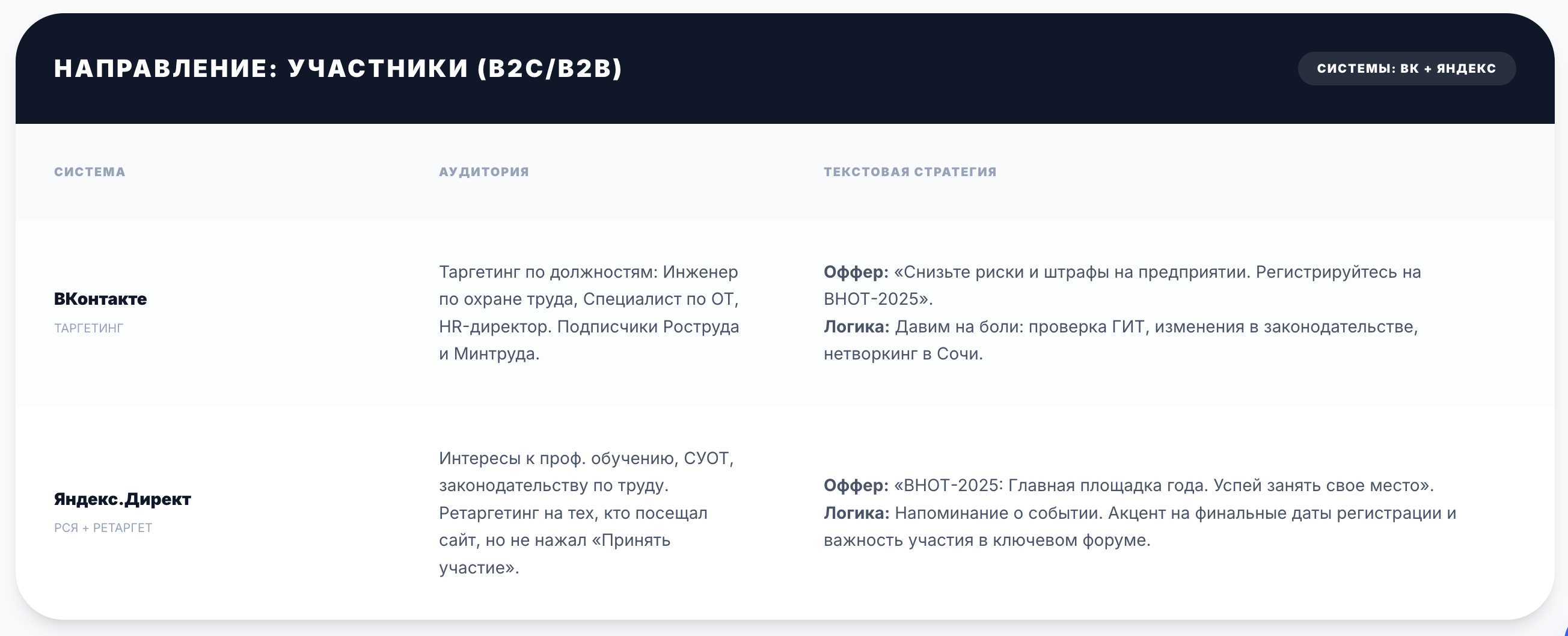 Проектирование стратегий: сегментация, подбор офферов и масок ключей (ВНОТ, СИЗ, Сочи).