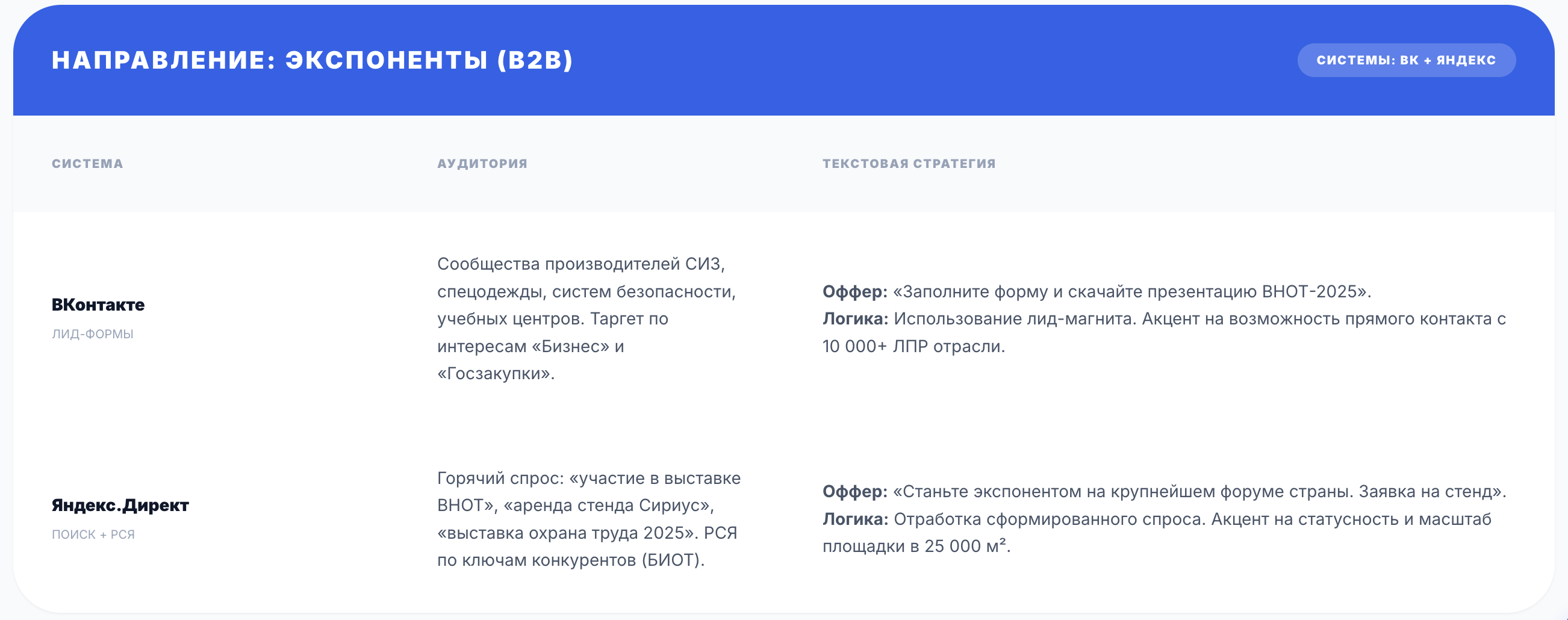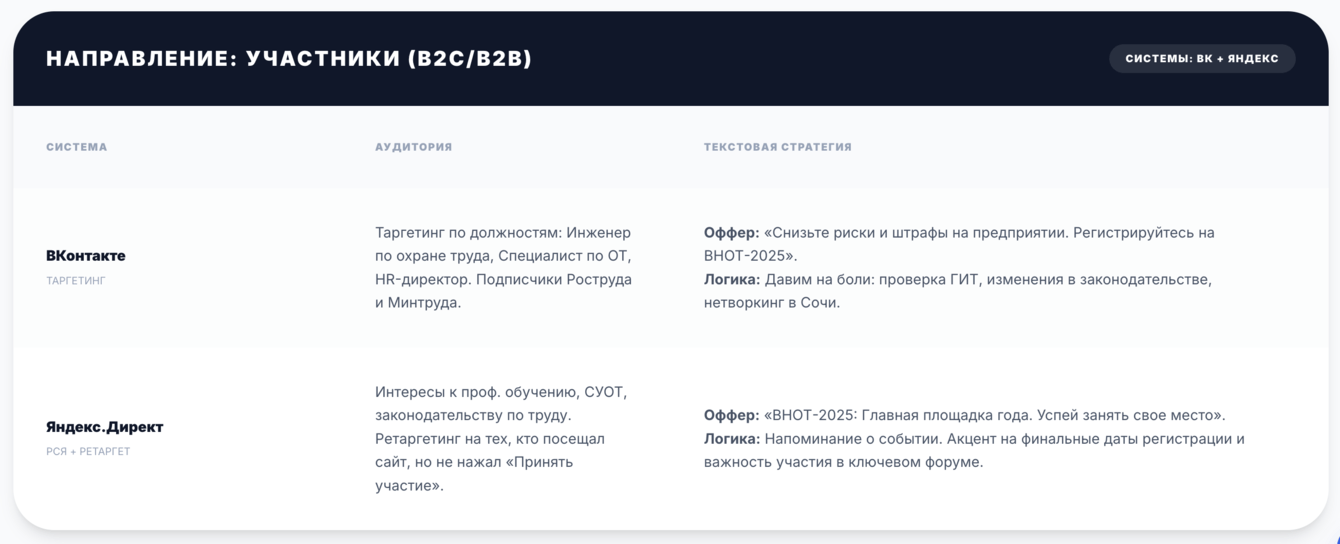 Мы разделили кампанию на независимые потоки, чтобы управлять бюджетами и метриками B2B и B2C сегментов точечно.