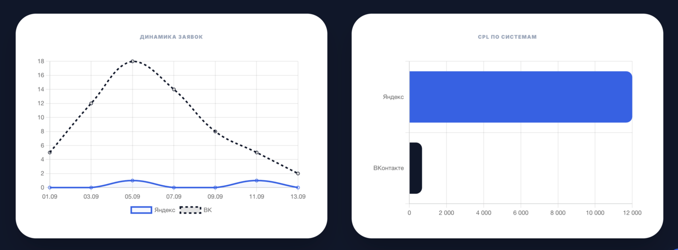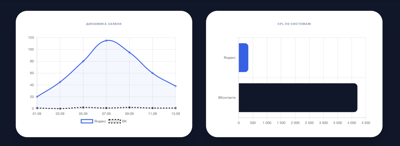 Цикл принятия решения длинный. Основной упор на ВК Лид-формы. Яндекс Директ использовался для отработки брендового поиска.