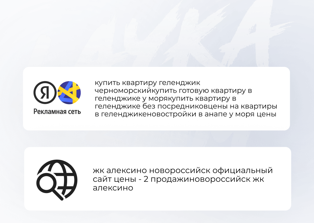 По Алексино нам удалось получить необычно низкую для города стоимость заявки, которая не сильно изменилась после событий начала года. Отлично сработали подменные экраны для соискателей недвижимости в других приморских городах. Большинство сделок было заключено именно с людьми, которые изначально не рассматривали Новороссийк. Это значит, что нам удалось сделать посадку, которая убедила людей изменить свои планы в пользу Алексино.