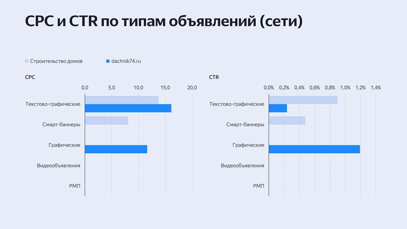 А вот текстово-графические объявления в РСЯ использовались не самым эффективным образом, т.е. для компании клиента — это точка роста, именно над ними и проводилась работа в этом сезоне.