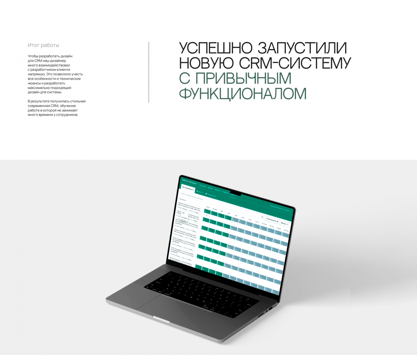 В результате получилась стильная современная CRM, обучение работе в которой не занимает много времени у сотрудников.