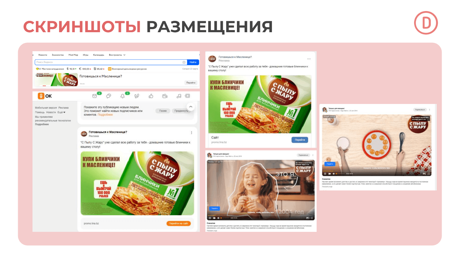 ЛИНА — лидер своего сегмента, конкурирует по блинчикам с другим крупным брендом. В ходе подготовки кампании были проведены глубокий анализ рынка, оценка конкурентной среды и исследование целевой аудитории, чтобы выбрать самый подходящий момент для старта рекламной активности (традиционно — Масленица).