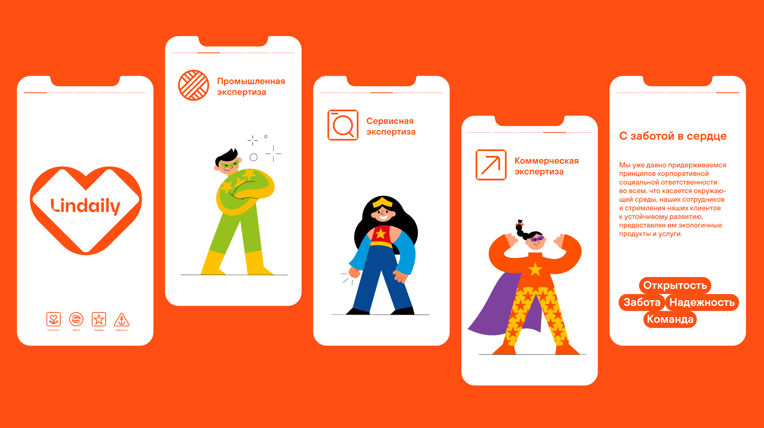 При выборе названия нам было важно сохранить связь с Lindstrom. Выбранное название «Lindaily» подчеркивает востребованность предоставляемых услуг и ответственность за комфорт клиентов и сотрудников в тысячах компаний. Это бренд технологичного современного сервиса, а не подрядчика — юридического лица.