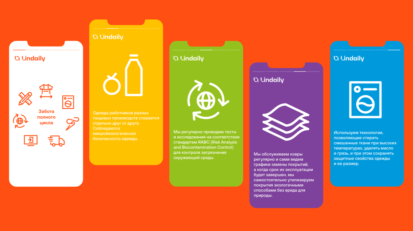 В клиентском портфеле Lindaily в России — более тридцати тысяч компаний из промышленности, строительства, медицины и других индустрий, где особенно важны условия труда. Мы разработали коммуникационные материалы, в которых говорим о ежедневных вызовах, с которыми сталкиваются шеф-повара, строители, сварщики, и рассказываем, как сервисы Lindaily делают их работу комфортнее.