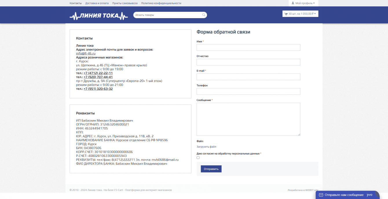 Нами были выполнены следующие работы по внесению изменений на сайте интернет-магазина «Линия тока»: