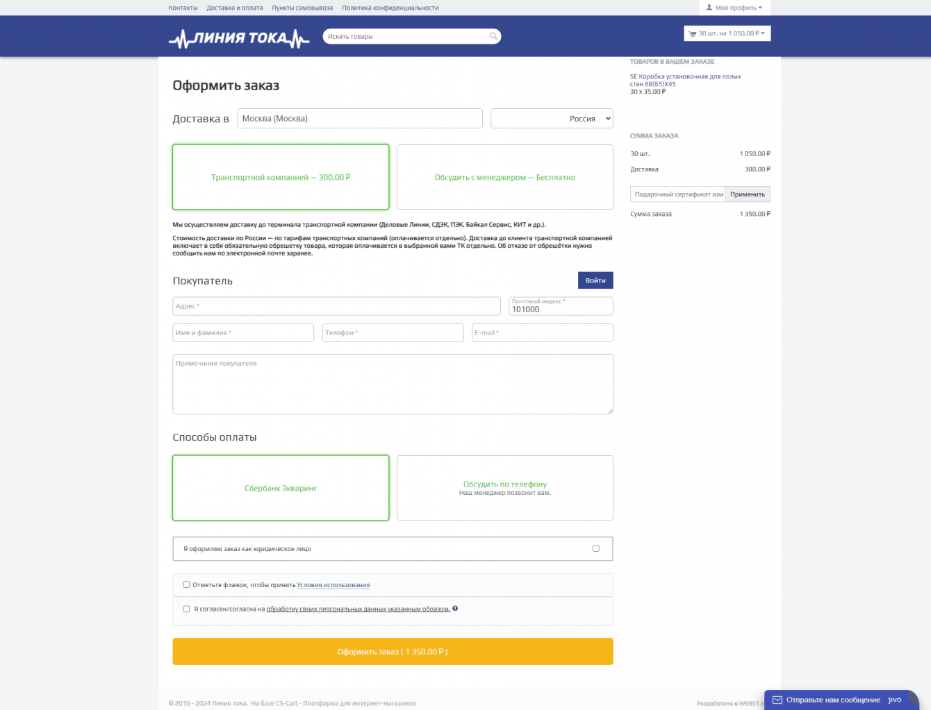 — Изменение страницы оформления заказа: 1) размещение корректного текста «Условия использования»; 2) настройка полей «Имя и фамилия» и «Телефон», как обязательных.