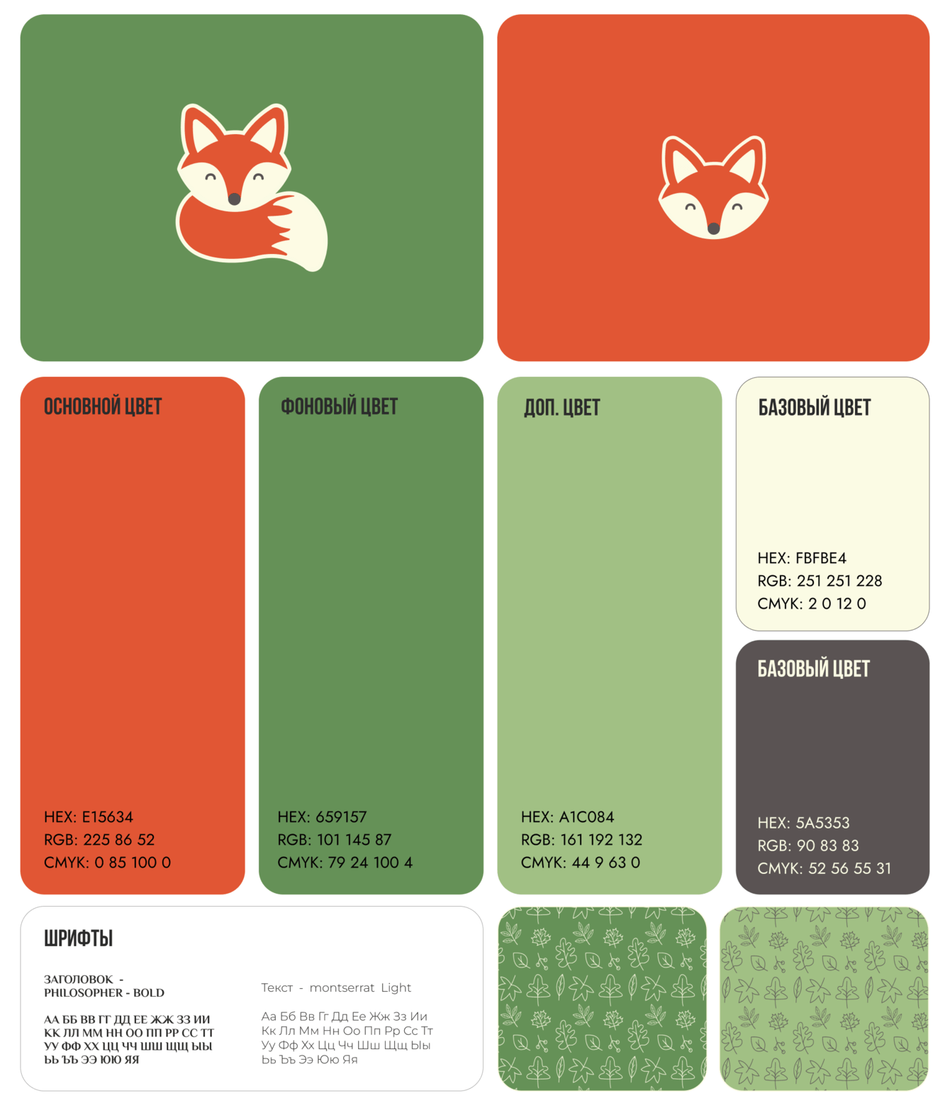 Фирменный стиль мы хотели обыграть от названия и передать атмосферу леса, дружелюбия и заботы.