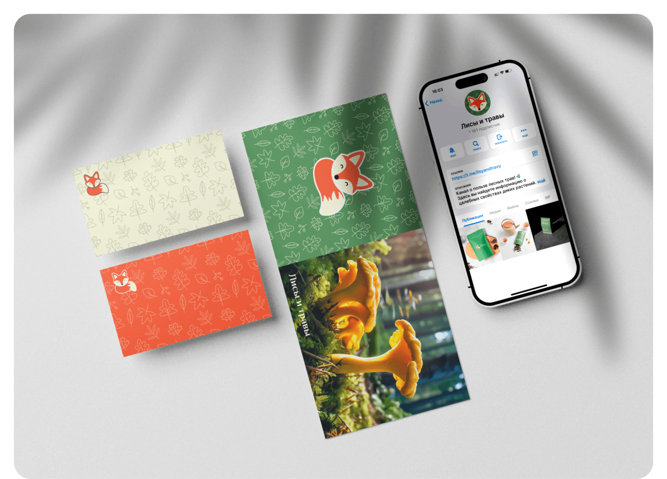 Мы использовали природные оттенки и элементы, создавая визуальную идентичность, которая вызывает ассоциации с лесом и растительным миром. Логотип и графические элементы подчёркивают связь с природой, а дружественные иллюстрации и тёплые цвета помогают создать уютную и доверительную атмосферу. Наше оформление Telegram-канала и постов направлено на то, чтобы привлечь внимание пользователей и передать им чувство покоя и гармонии, связанное с пользой трав и растений.