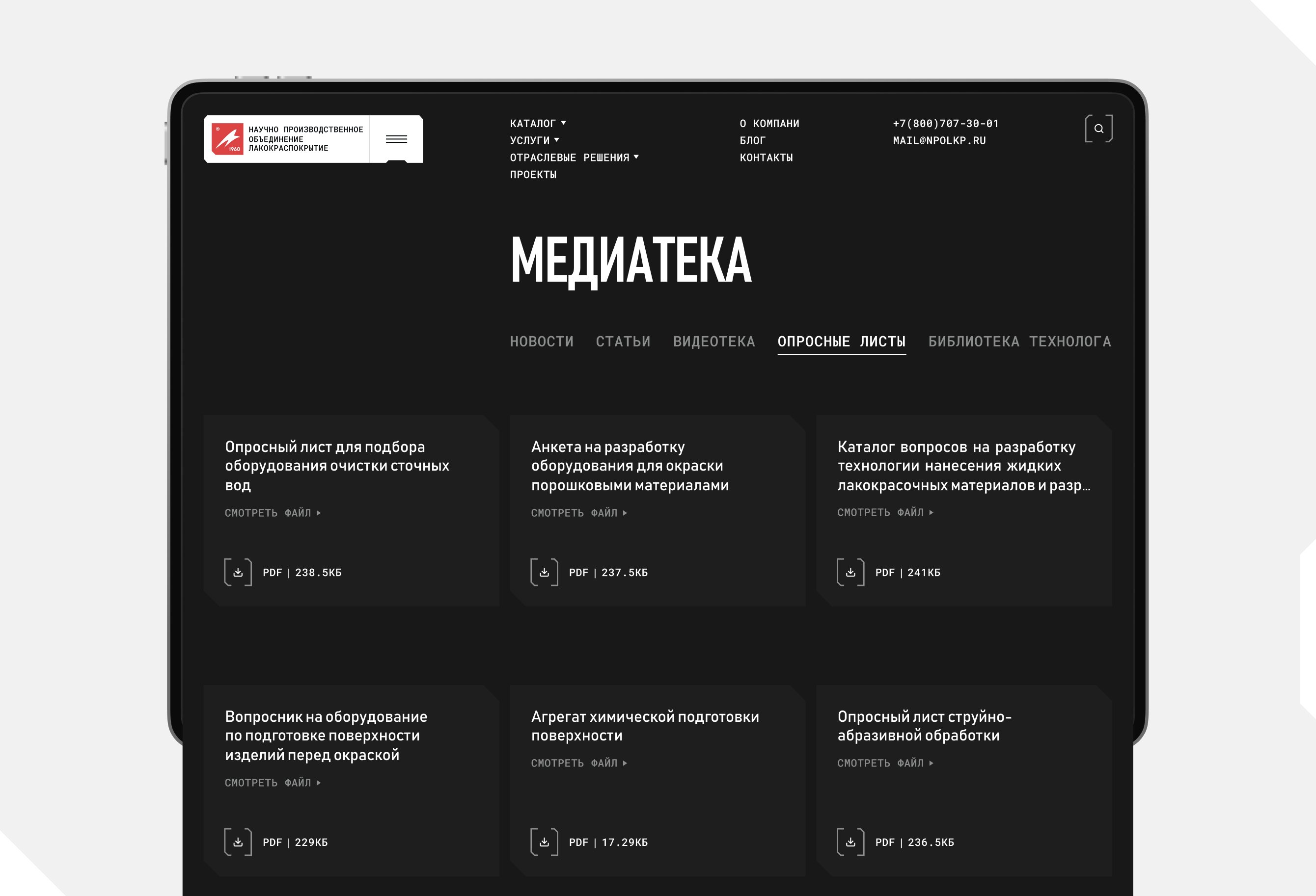Также добавили на сайт новый раздел — Медиатека. Это своего рода база знаний обо всех проектах, технологиях и событиях НПО ЛКП.