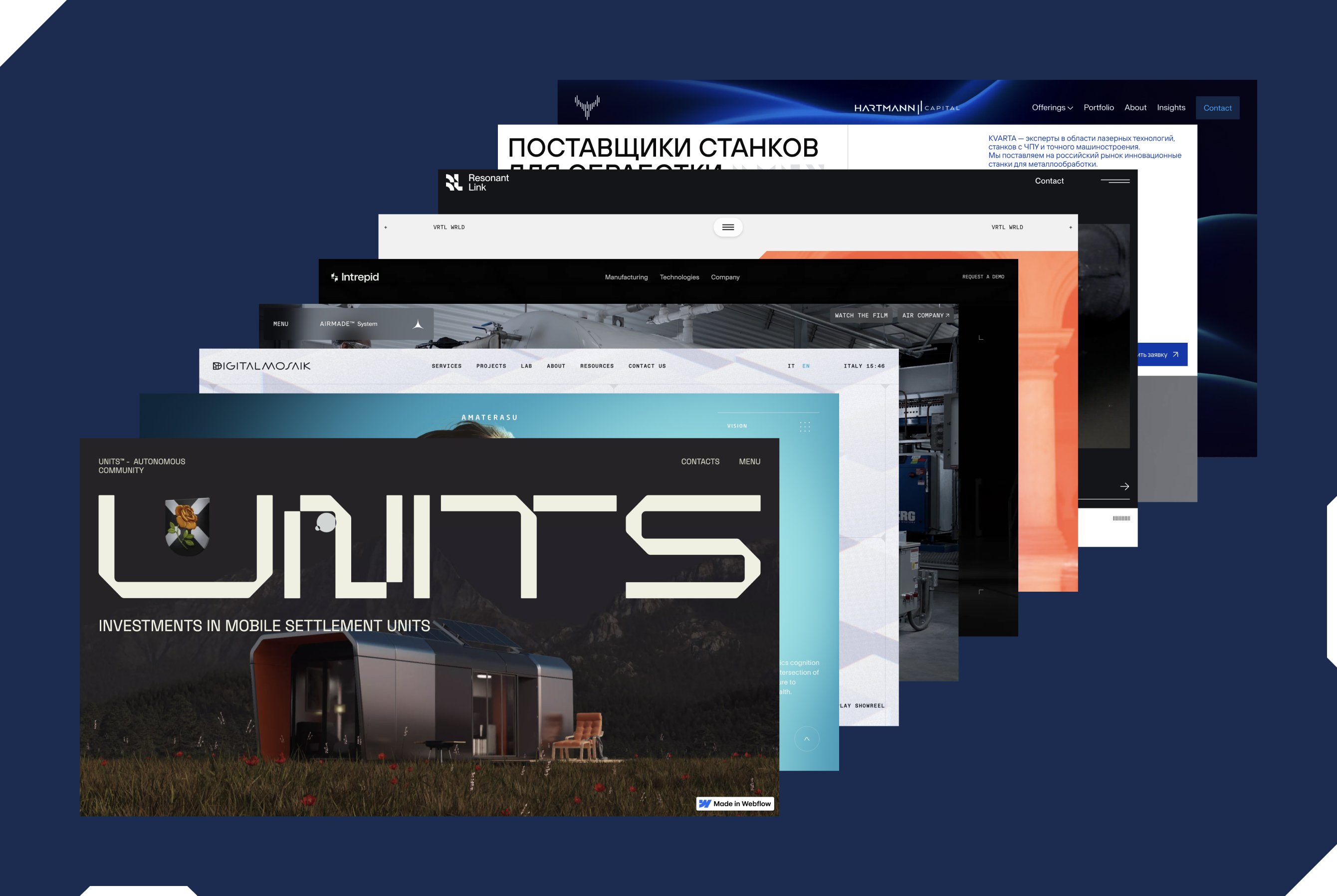Создавая вайрфреймы, мы поняли, что нам не хватает качественных визуалов — основная идея состояла в том, чтобы использовать их везде, в каждом разделе сайта, от главной страницы, до описания кейсов и услуг.