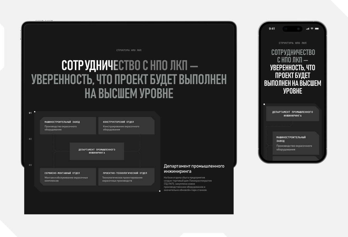 НПО ЛКП нужен был новый, современный сайт, который помог бы выделить компанию на фоне конкурентов, подчеркнуть многолетний опыт и собственное, полностью российское производство, понятно рассказать о достоинствах продукции и процессах ее создания.