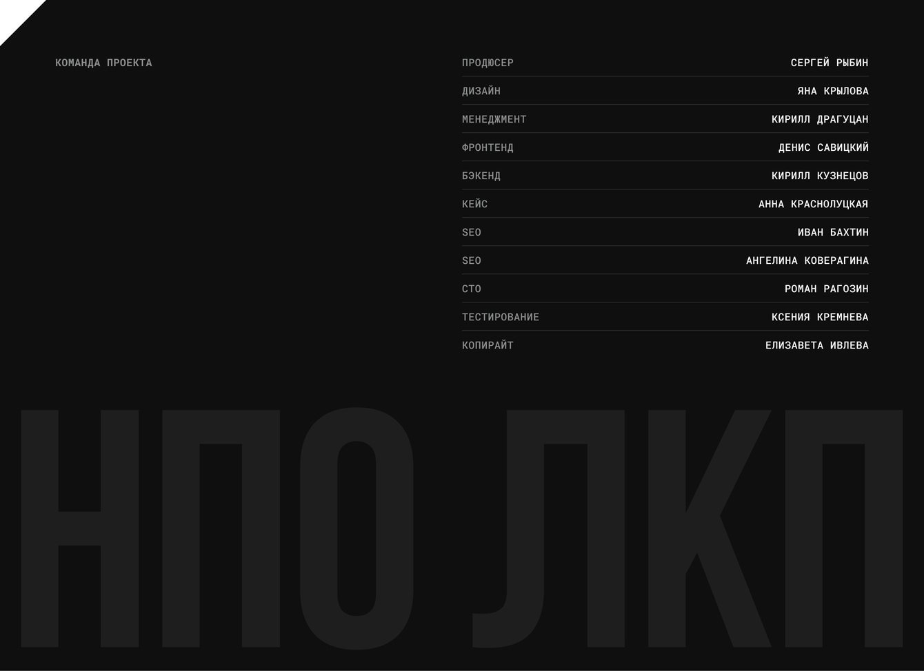 В этом же блоке добавили наглядную структуру компании, тем самым еще раз подчеркнули наличие у ЛКП собственного исследовательского отдела и отдела проектирования.