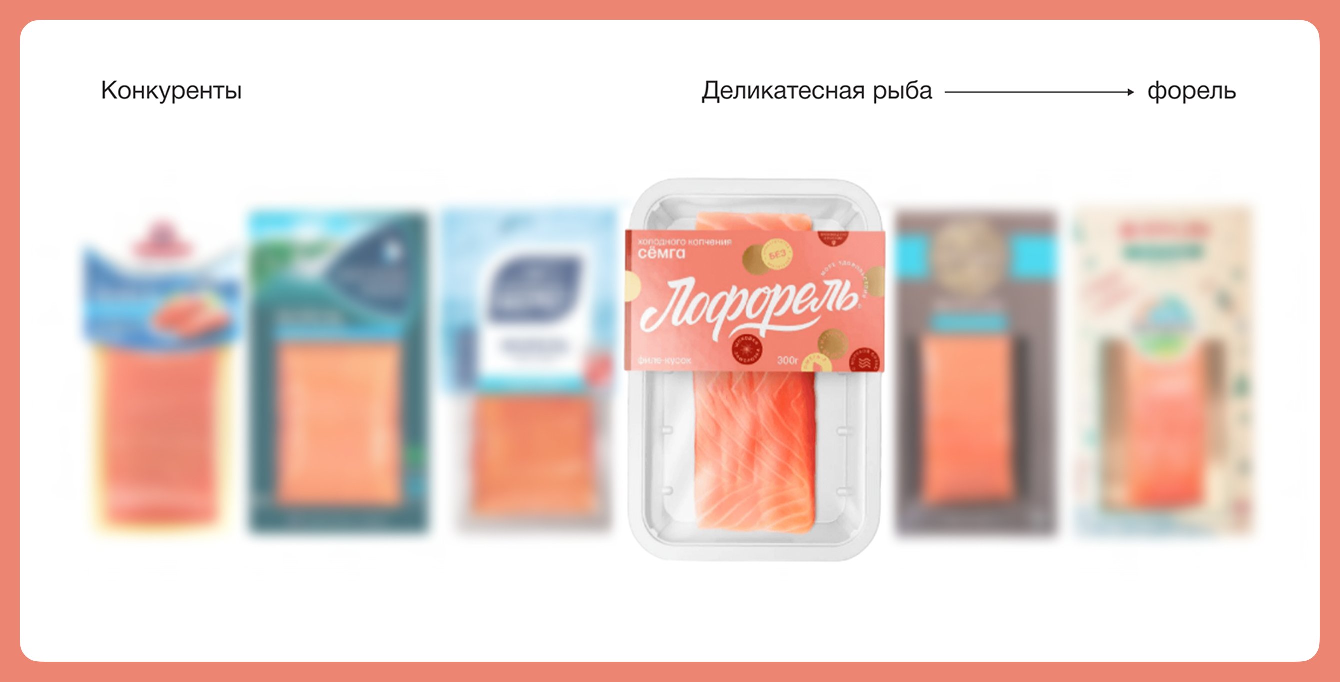 Каждый вывод исследований превратился в гипотезу по позиционированию и дизайн-концепции. Например, мы заметили прямую связь и ассоциацию с бутербродами и тарталетками, которые украшают новогодние столы и подаются на фуршетах. Так появилась гипотеза, что целевая аудитория, покупая деликатесную рыбу, покупает не только еду, но и возможность создать праздничное настроение с красивой подачей. Из этой гипотезы родилась дизайн-концепция с конфетти на упаковке.