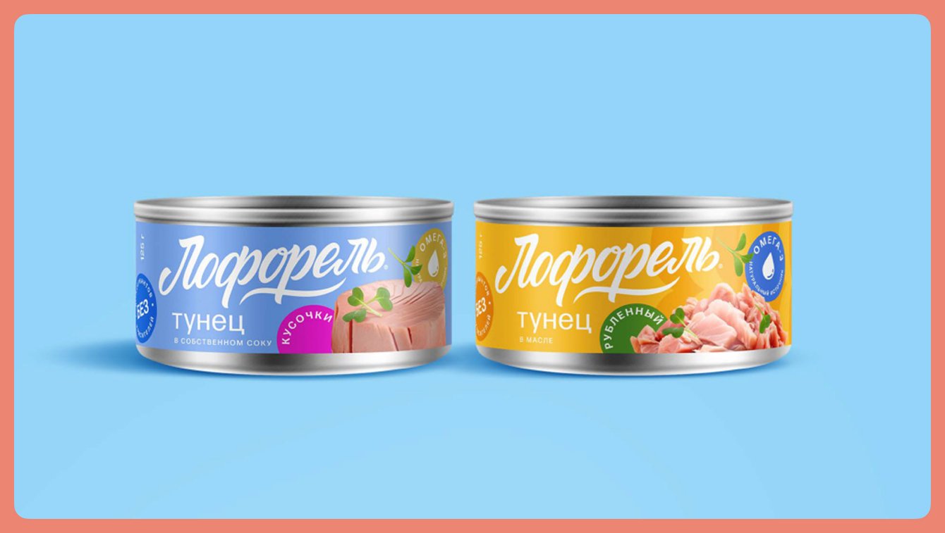 Цвета упаковки упрощают визуальный выбор для покупателей. Жёлтый цвет показывает, что рыба законсервирована с маслом, а голубой — в собственном соку
