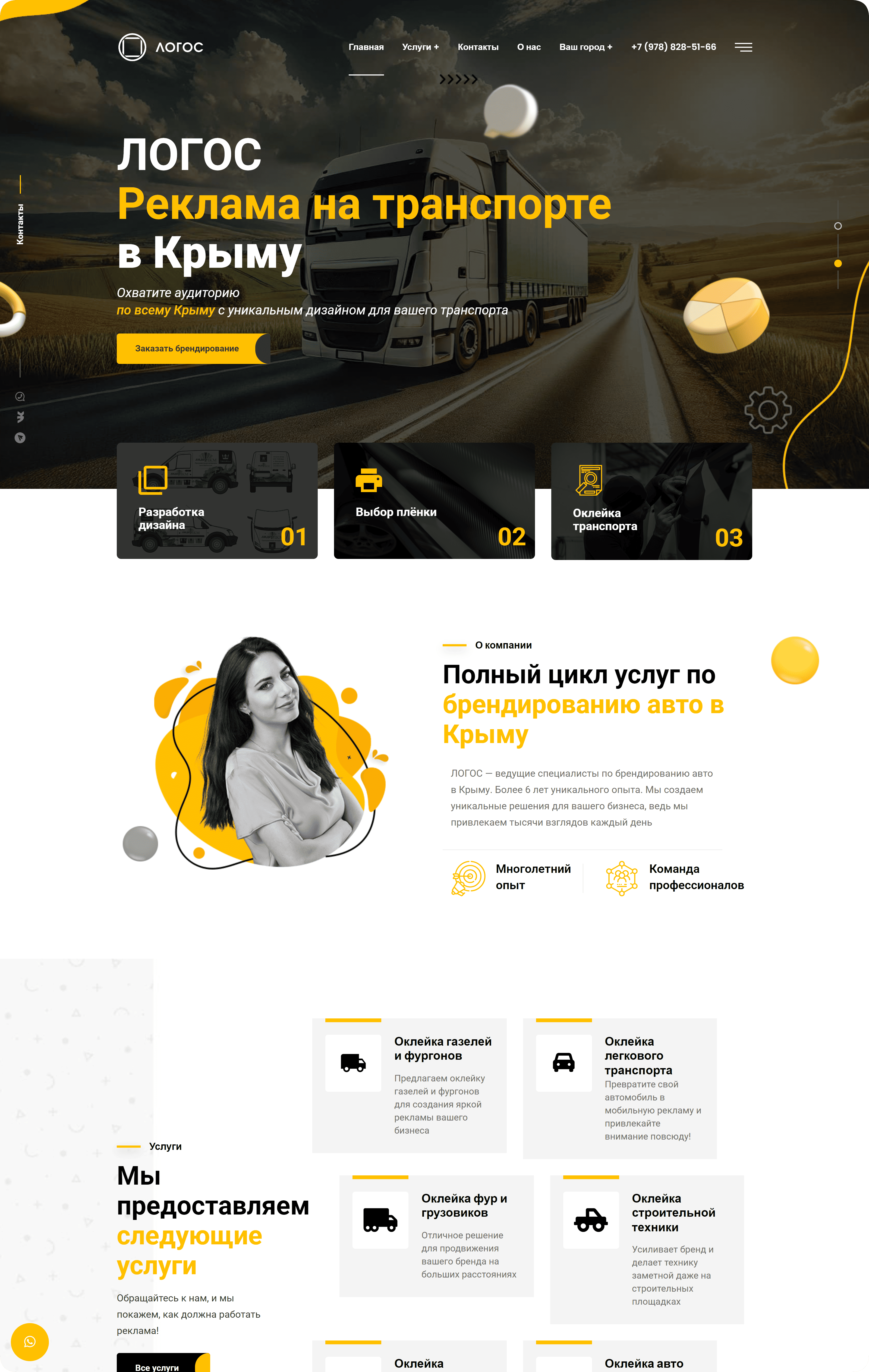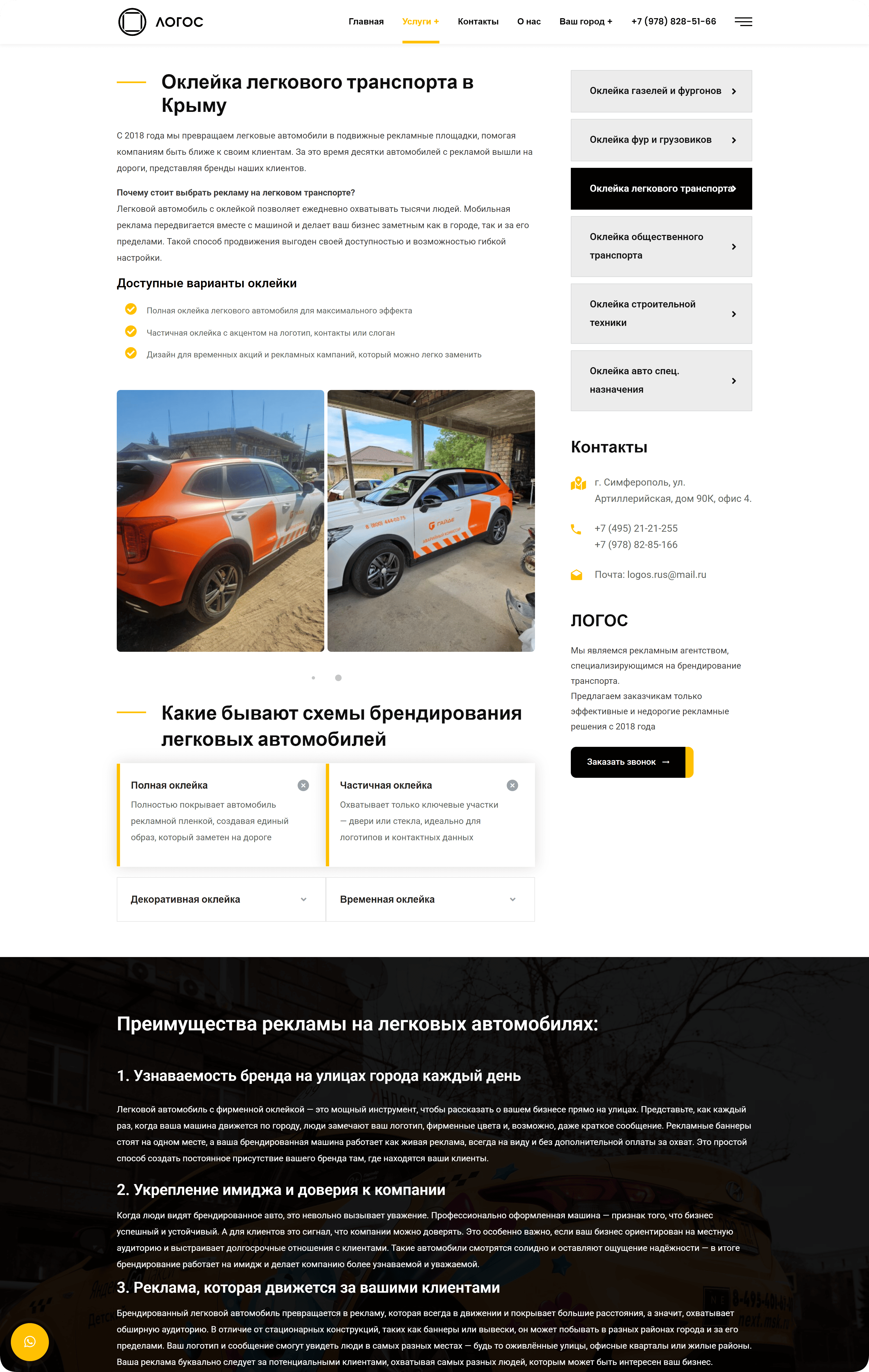 Целью проекта было создание сайта, который бы поспособствовал демонстрации преимуществ брендирования автомобилей. Поэтому мы начали с: