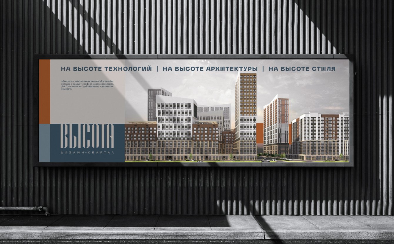 «Высота» – квинтэссенция технологий и дизайна, которая образует комфорт нового поколения. Дизайн-квартал, который в прямом смысле выводит уровень жизни на новую высоту. Для жилого комплекса креативное брендинговое агентство GreenMars разработало логотип и фирменный стиль, соответствующий уровню жизни в нём.