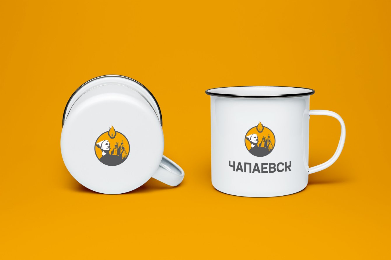 Логотип получился сложный, но емкий, на первом плане с лева бюст Чапаева на втором, справа Собор, наверху символ завода, и все это заключено в круг.
