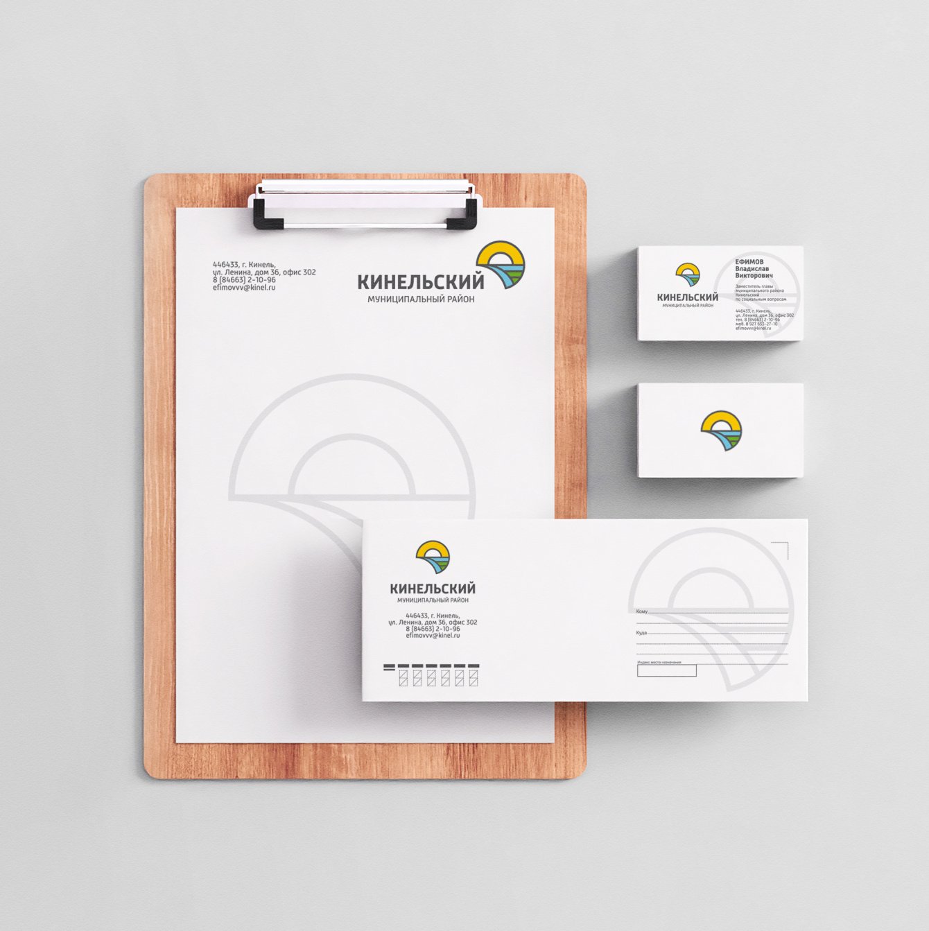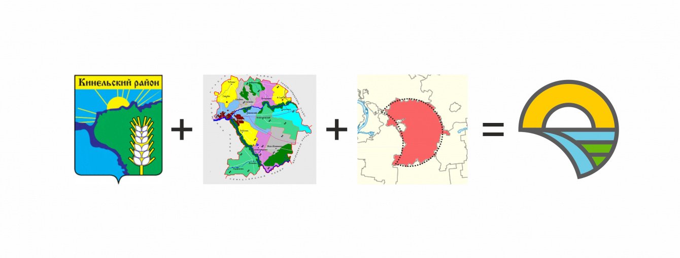 Логотип основан на гербе района и уникальных географических особенностях. Основой знака послужил уникальный феномен, где река Самарка делится на две реки — Самарка и Большой Кинель, а другая часть логотипа — это солнце, плодородные земли и леса.