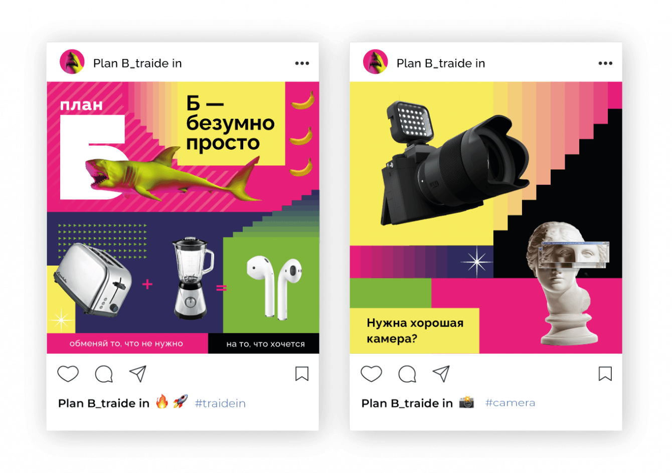 «План Б» ― первая сеть комиссионных магазинов с уникальными условиями трейд-ин. Это бренд-челленджер, который хочет изменить правила игры в своей категории. Он не боится противопоставления крупным игрокам и планирует открывать магазины напротив ведущих ретейлеров техники и электроники. В его природе ― соперничать, бросать вызов.