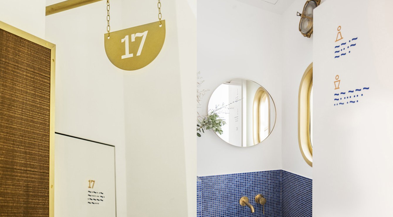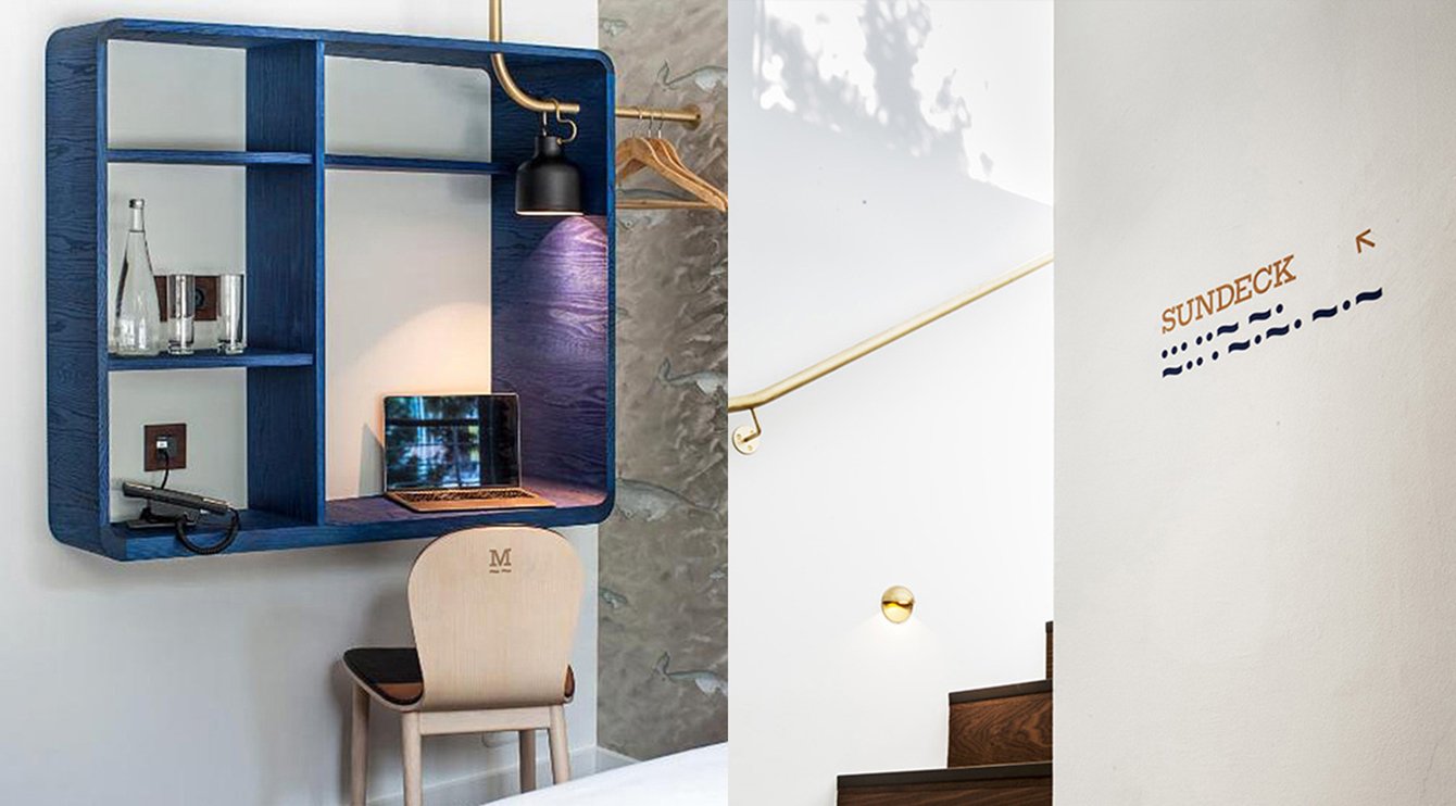Перед нами стояла задача разработать простой лаконичный стиль для отеля. Необходимо было обыграть корабельную тему, но не прибегать к использованию классических образов кораблей, якорей, иллюминаторов и т. д.