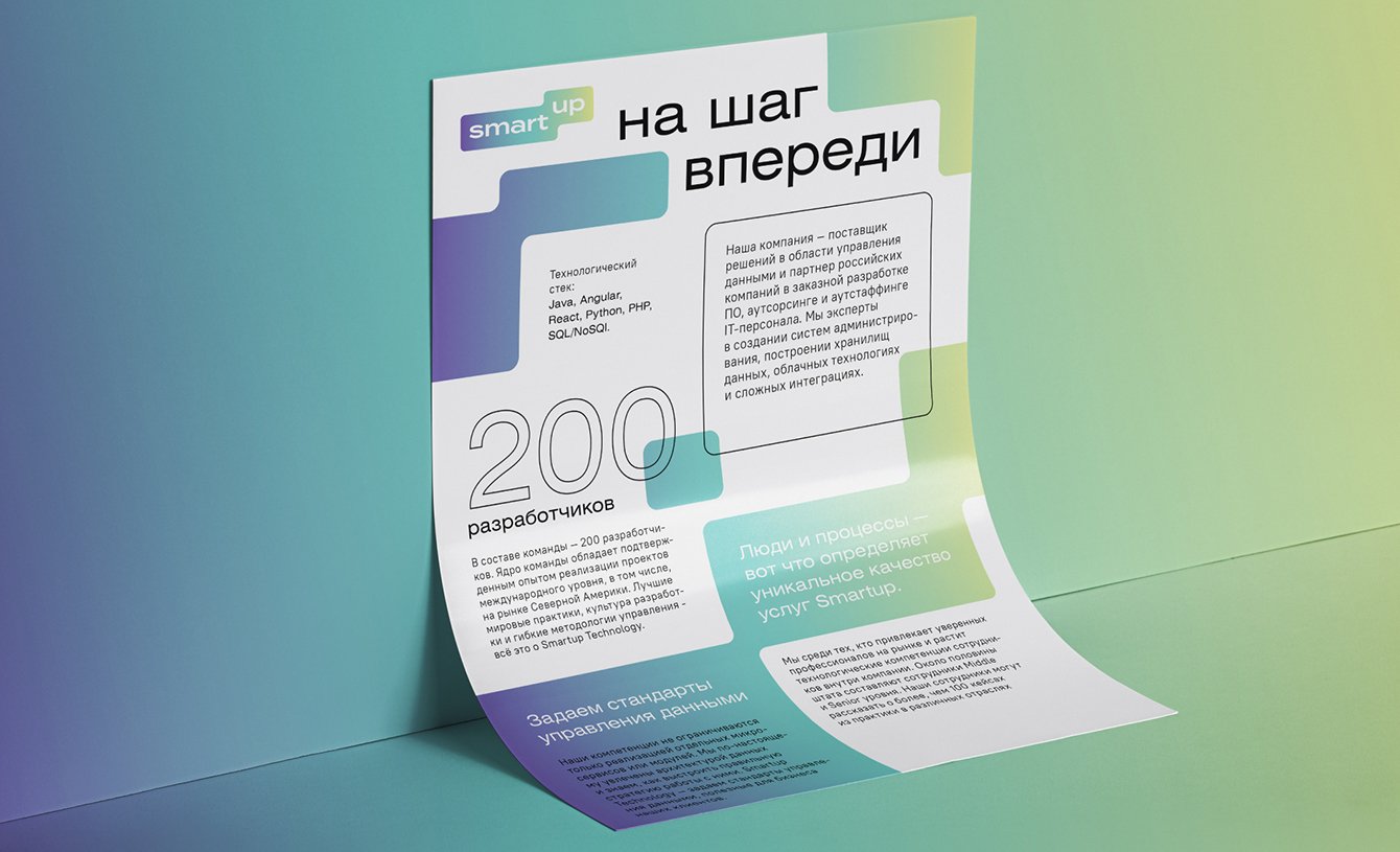 Smartup — новый IT-бренд, созданный ведущими специалистами в области систем управления данными для высоконагруженных приложений. Команда бренда долгое время работала с западными клиентами, а потому на более глубоком и тонком уровне владеет некоторыми технологиями, чем разработчики в России. Уникальная техническая экспертиза в областях, связанных с big data, и культура партнерских отношений с клиентами — вот что позволяет компании быть на шаг впереди в решении технически сложных задач.